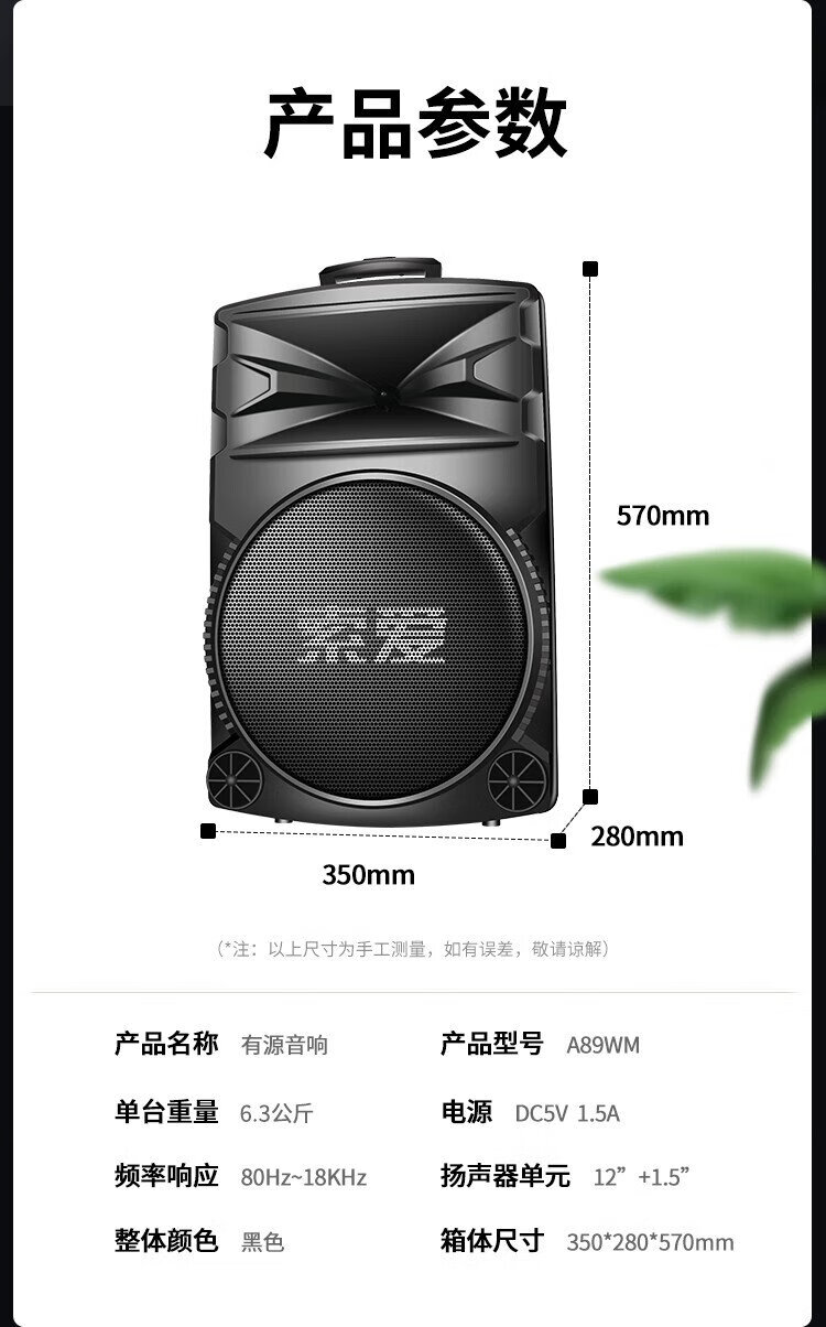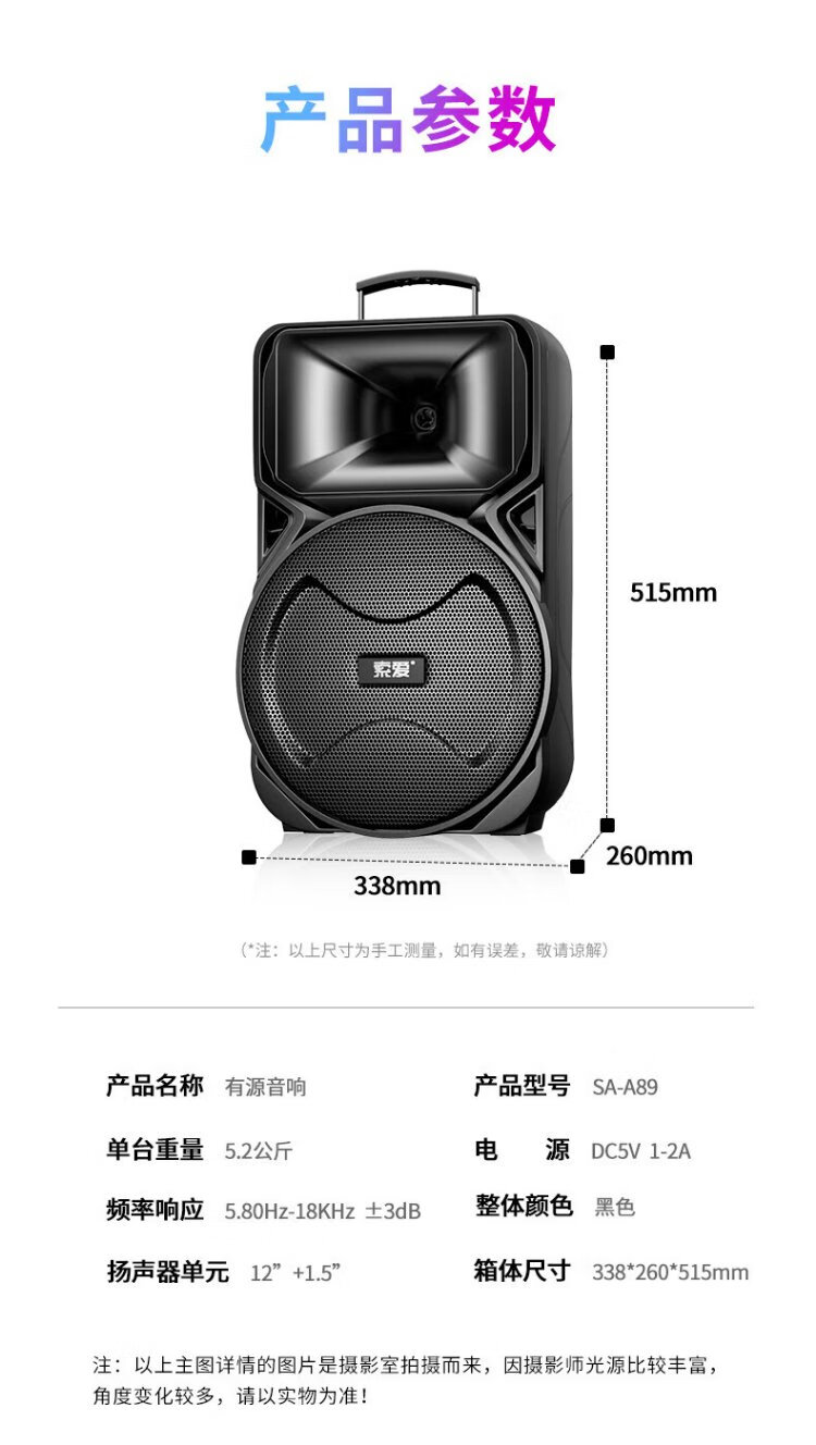 Sony Ericsson (soaiy) 12-inch square dance audio high-power portable outdoor heavy bass Bluetooth karaoke special high-volume mobile trolley speaker outdoor performance equipment single microphone A95