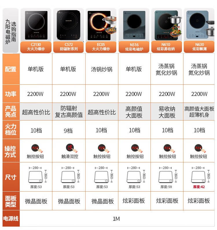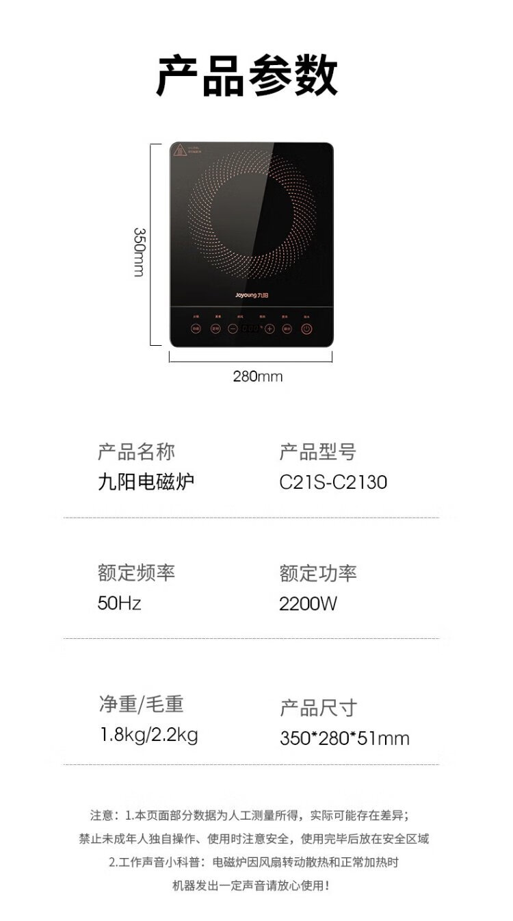 Joyoung induction cooker 2200W high-power household touch button durable panel ten-speed firepower slim timer electric ceramic cooker induction cooker fire boiler C21S-C2130