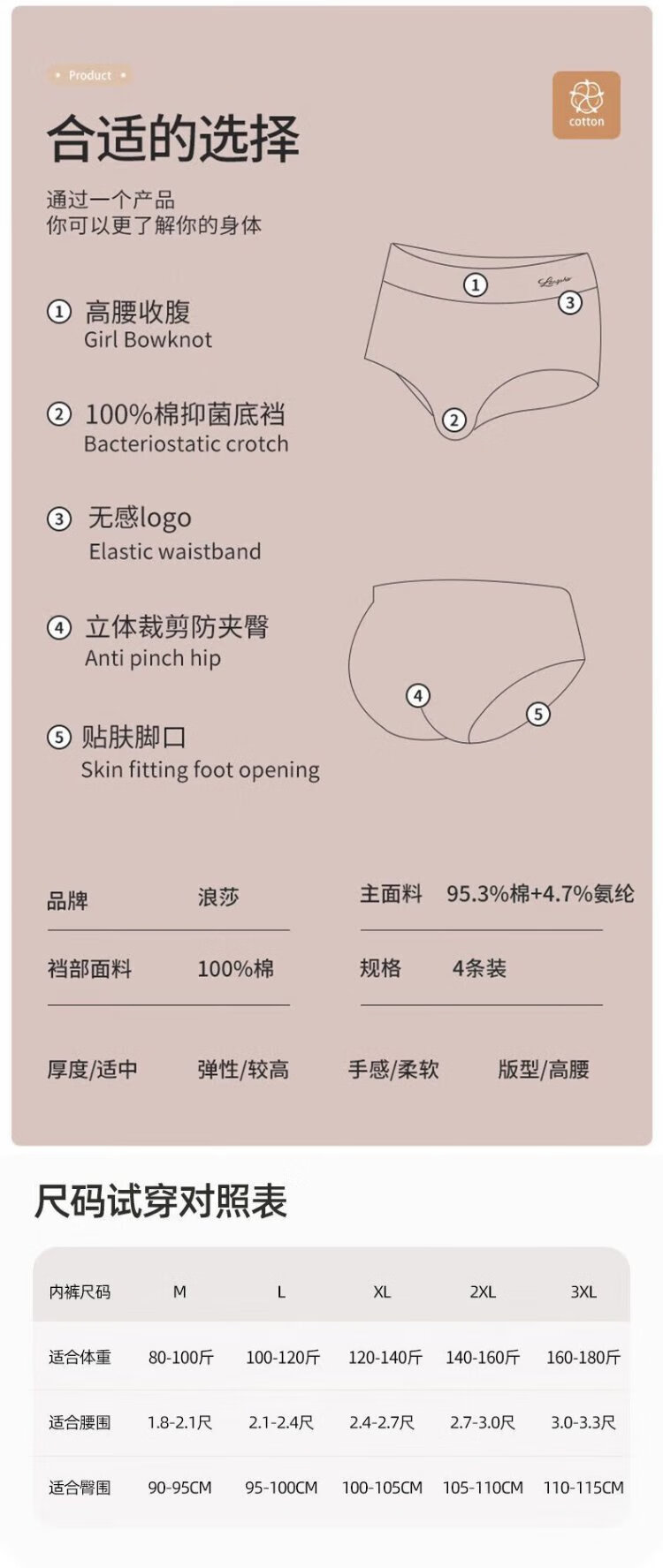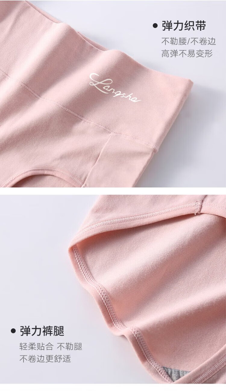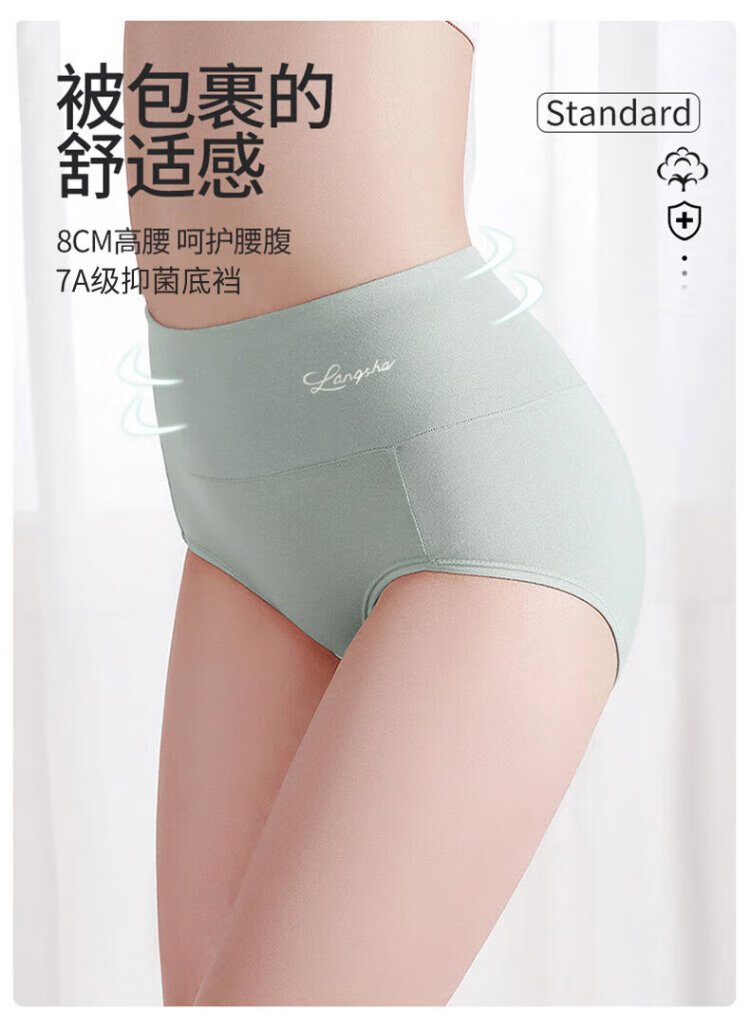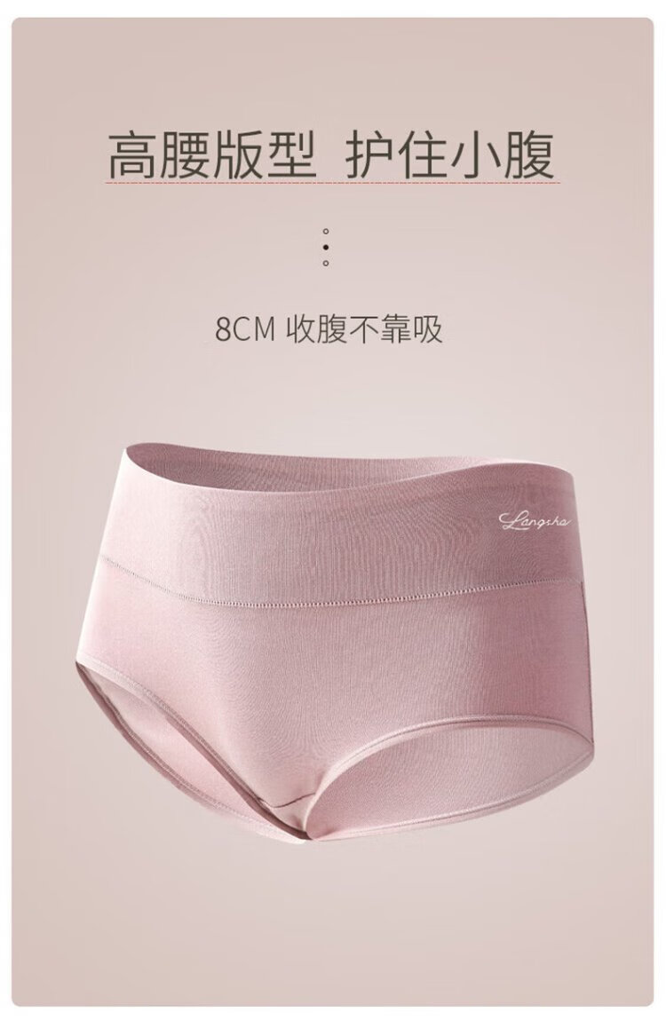 Langsha High Waist Underwear Women's 4 Pairs Pure Cotton Antibacterial Crotch Women's Tummy Control Comfortable Large Size Cotton Briefs