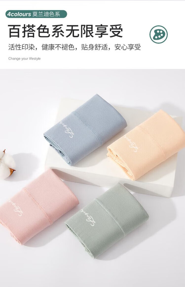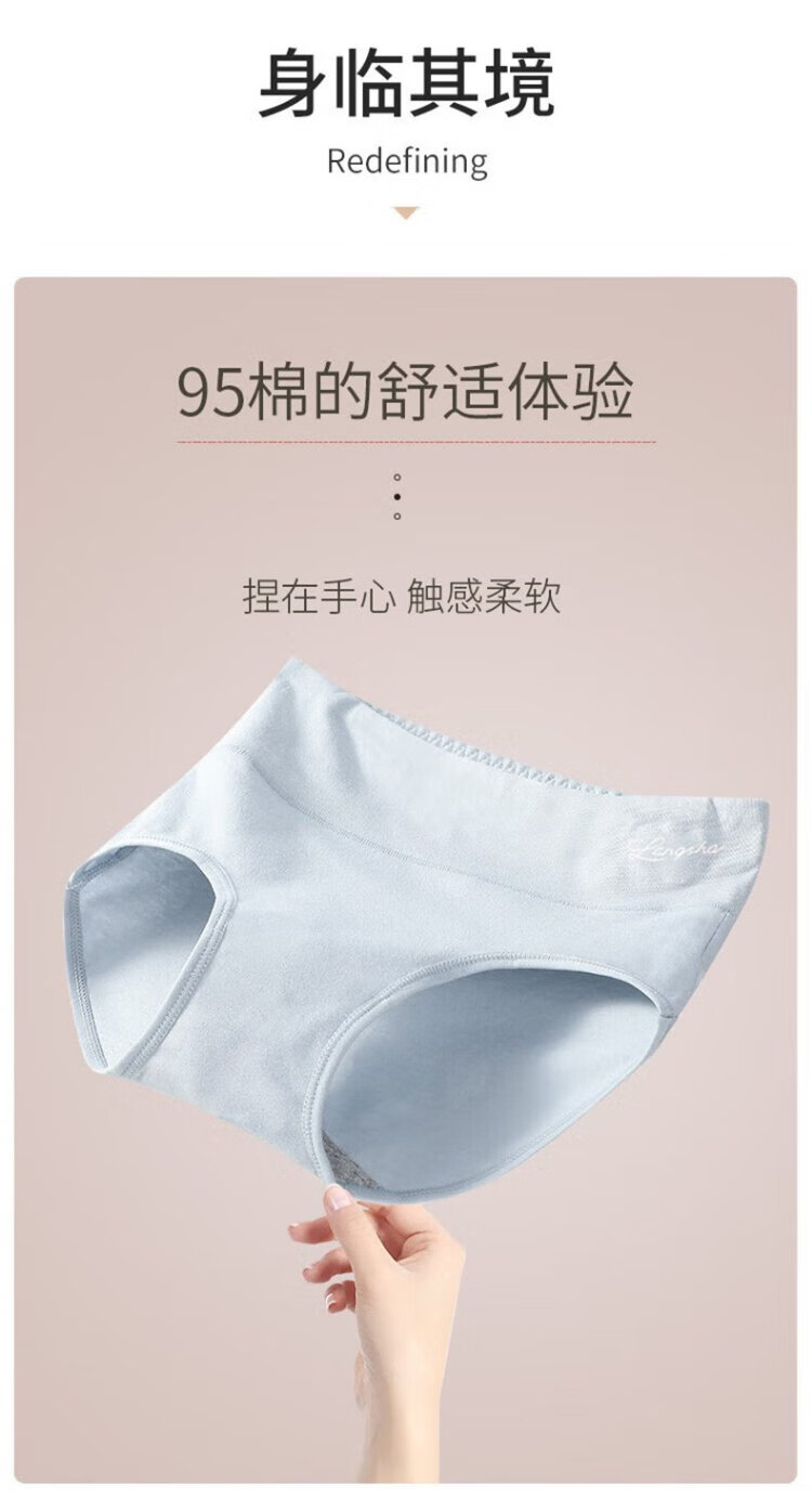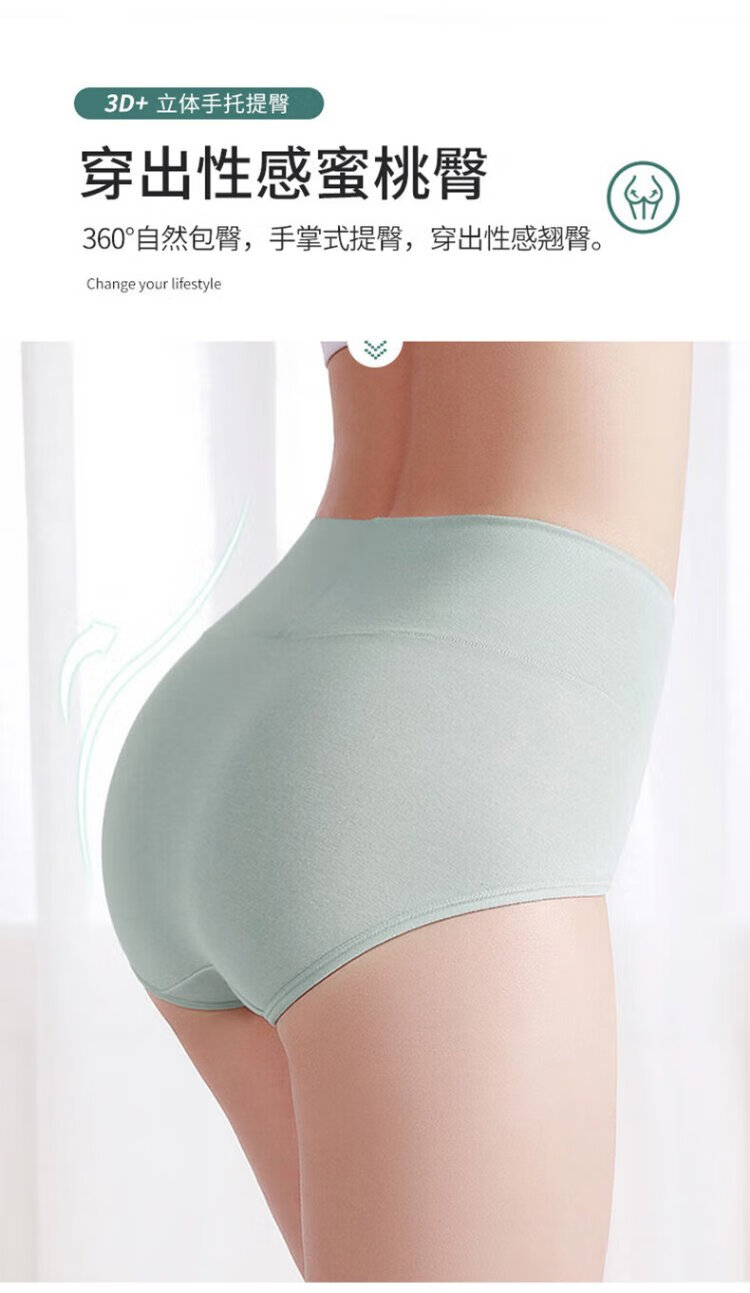 Langsha High Waist Underwear Women's 4 Pairs Pure Cotton Antibacterial Crotch Women's Tummy Control Comfortable Large Size Cotton Briefs