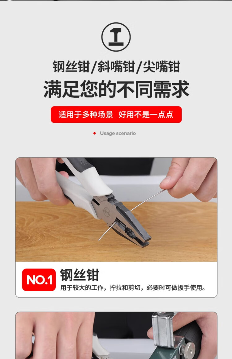 GREENER pliers three-piece set wire pliers needle nose pliers diagonal nose pliers labor-saving clamping electrician tools household vise pliers