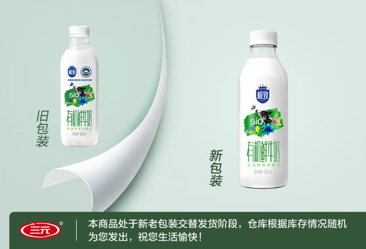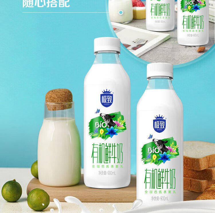 Sanyuan Ultimate Organic Fresh Milk Pasteurized 900ml*2 Bottles Regular Purchase 3.8g Protein