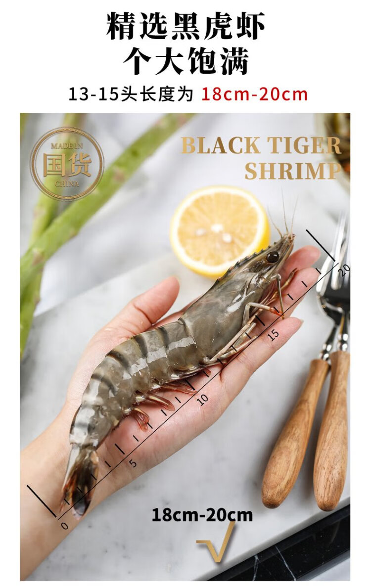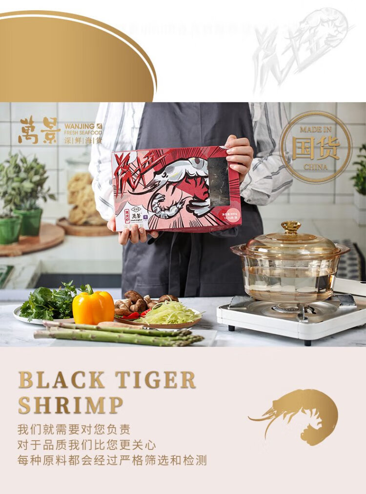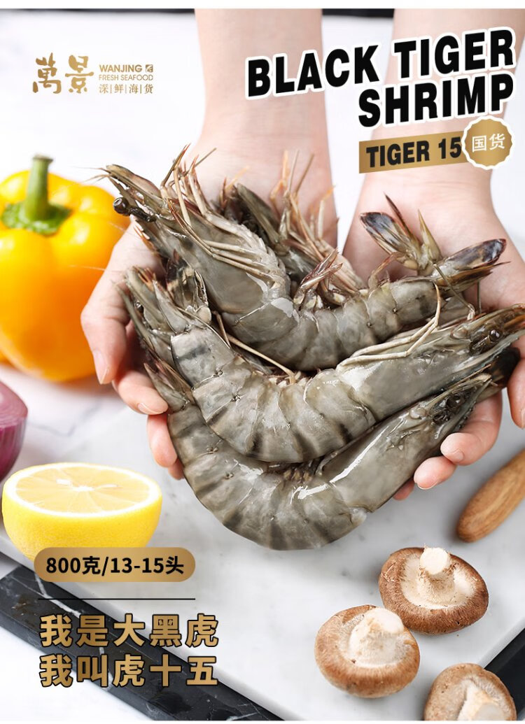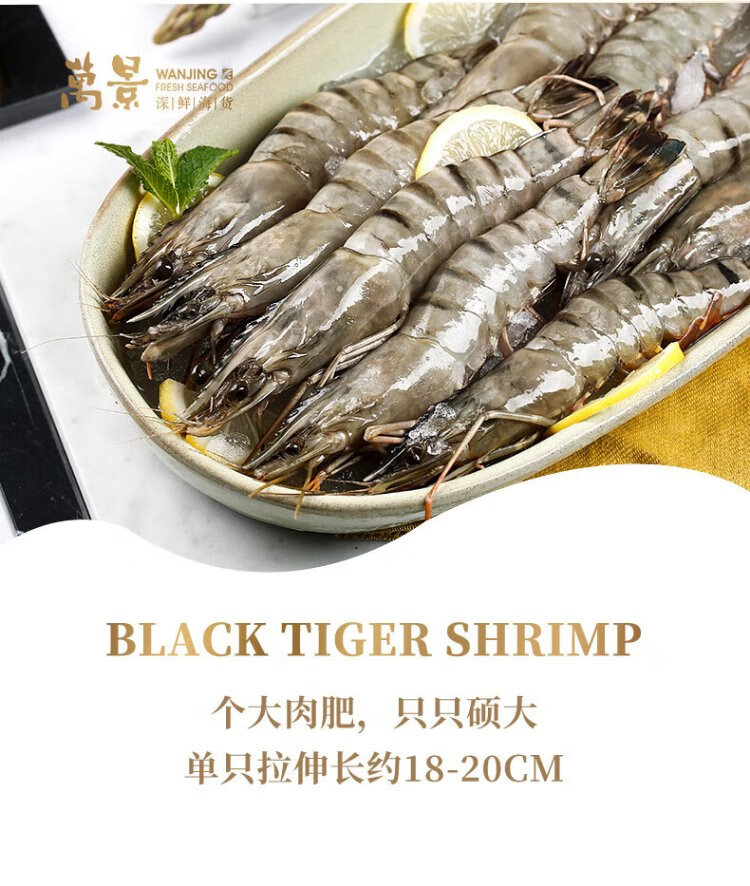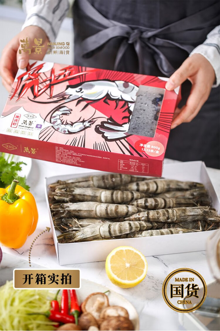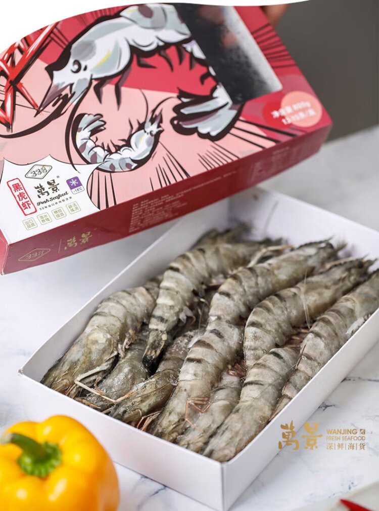 Wanjing Live Frozen Domestic Black Tiger Shrimp (Extra Large) Single Frozen Net Weight 800g/box 13-15 pieces New Year's Eve Goods for Dinners
