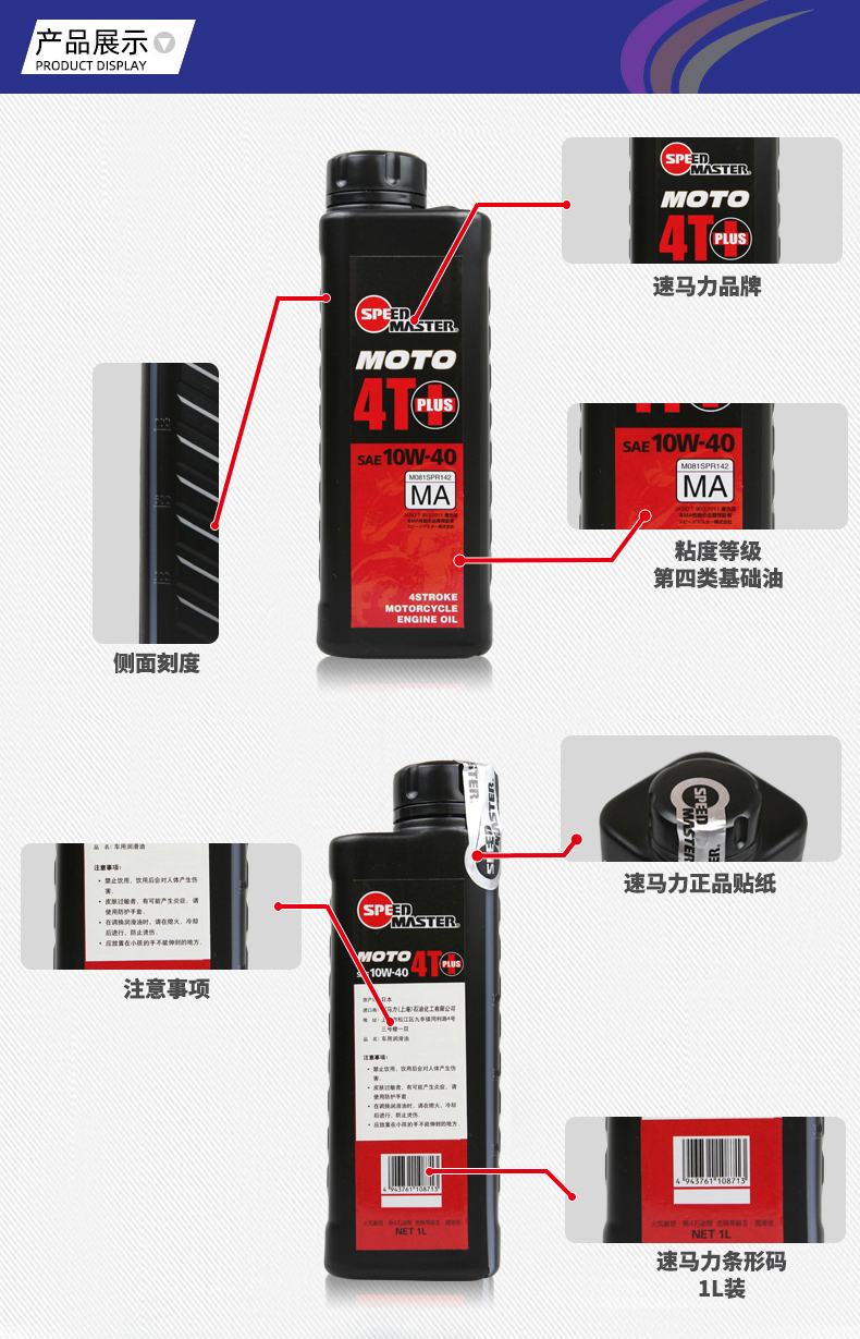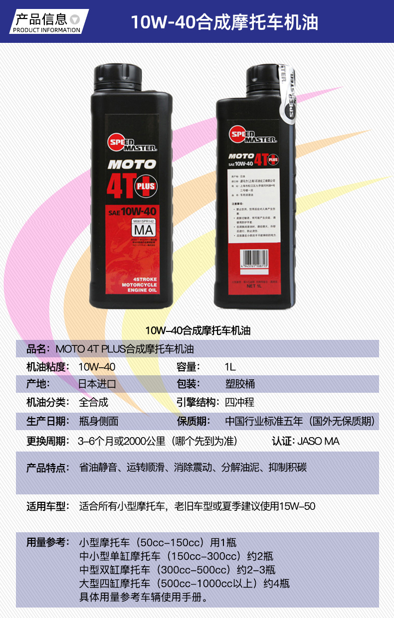 SPEED MASTER Japan original imported 10W-40 motorcycle synthetic oil pedal four-stroke suitable for Haojue Ghost Fire Yamaha