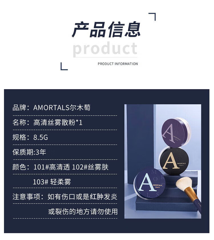 AMORTALS HD Silk Mist Setting Powder 8.5g Oil-Controlling Honey Powder Refreshing and Long-Lasting Holiday Gift