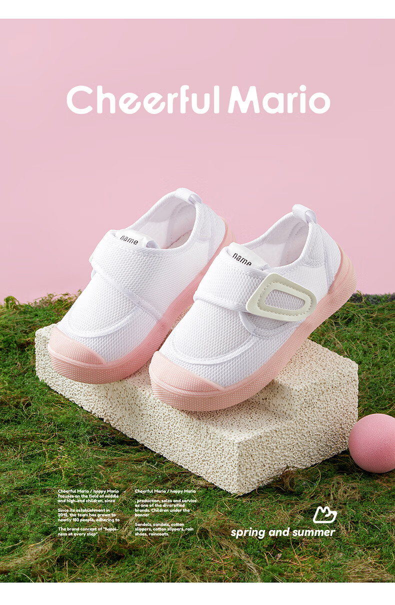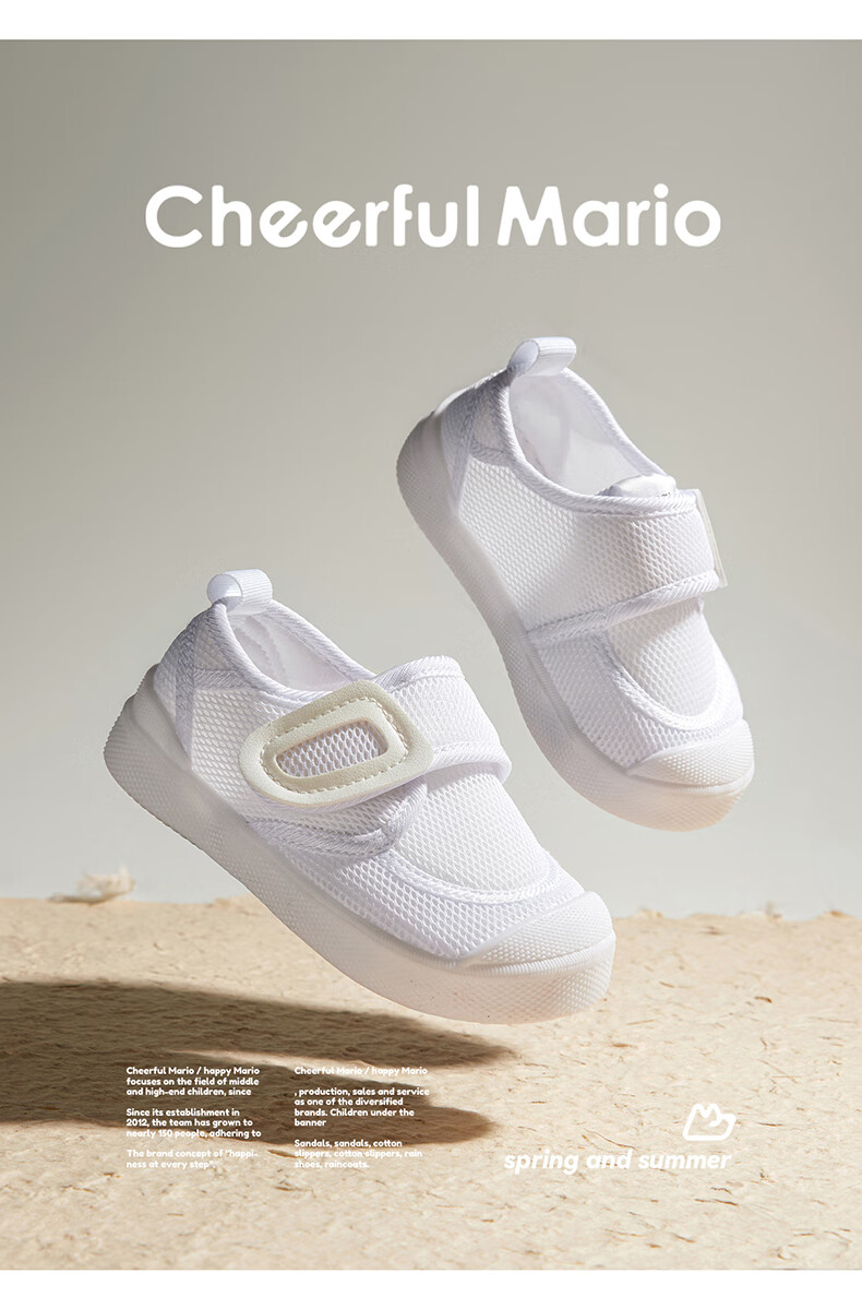 Cheerful Mario Children's Day White Shoes Kindergarten Indoor Shoes Boys Girls Baby Canvas Shoes Spring Autumn Dance Performance Children's Shoes