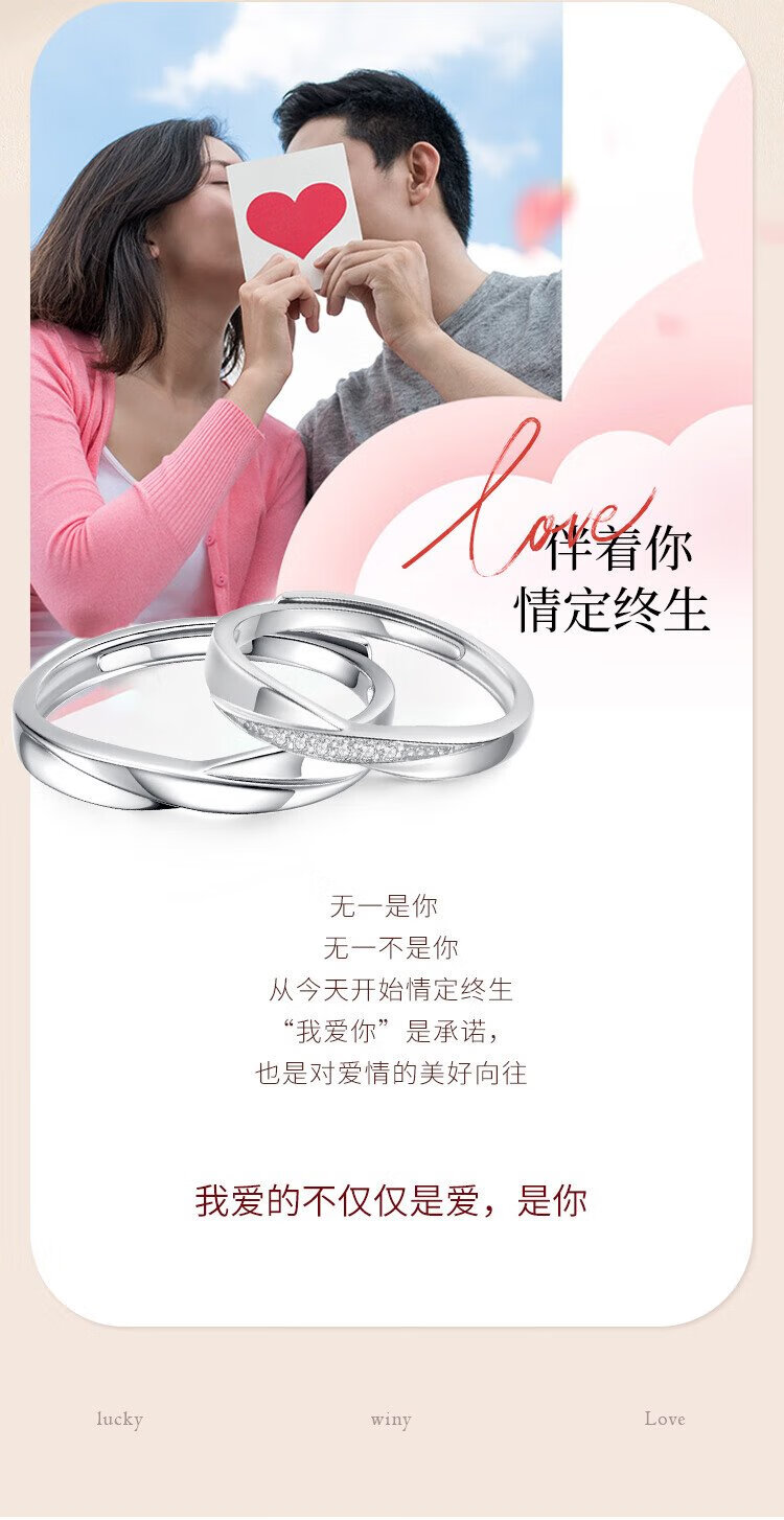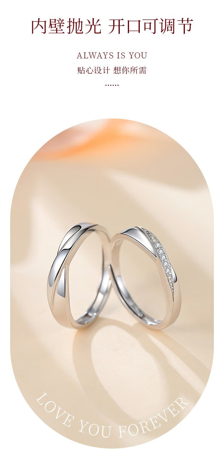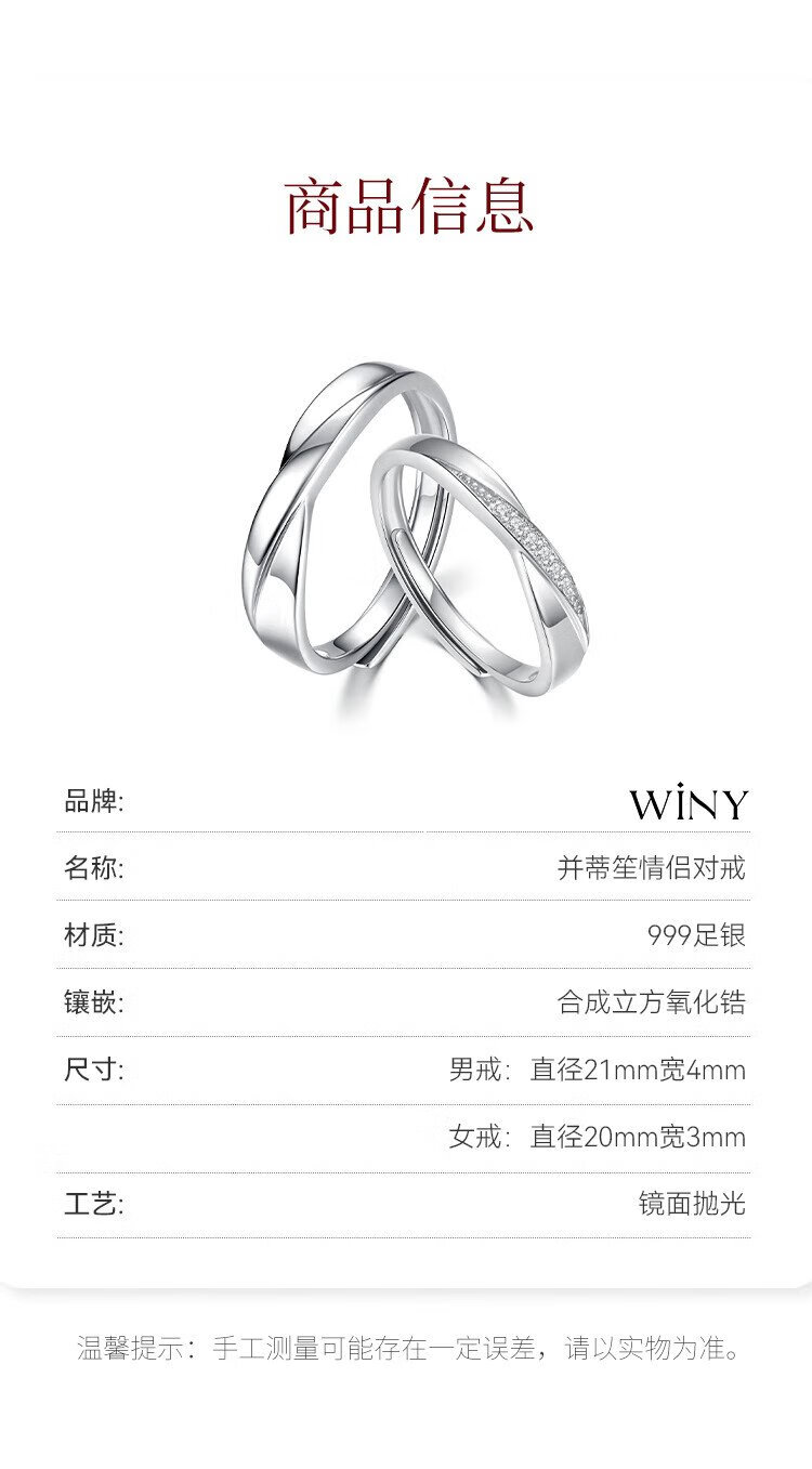 The only (Winy) 999 sterling silver couple ring pair, a pair of practical engagement rings, men's and women's birthday gift jewelry
