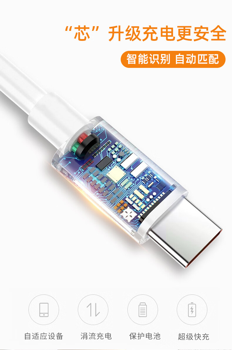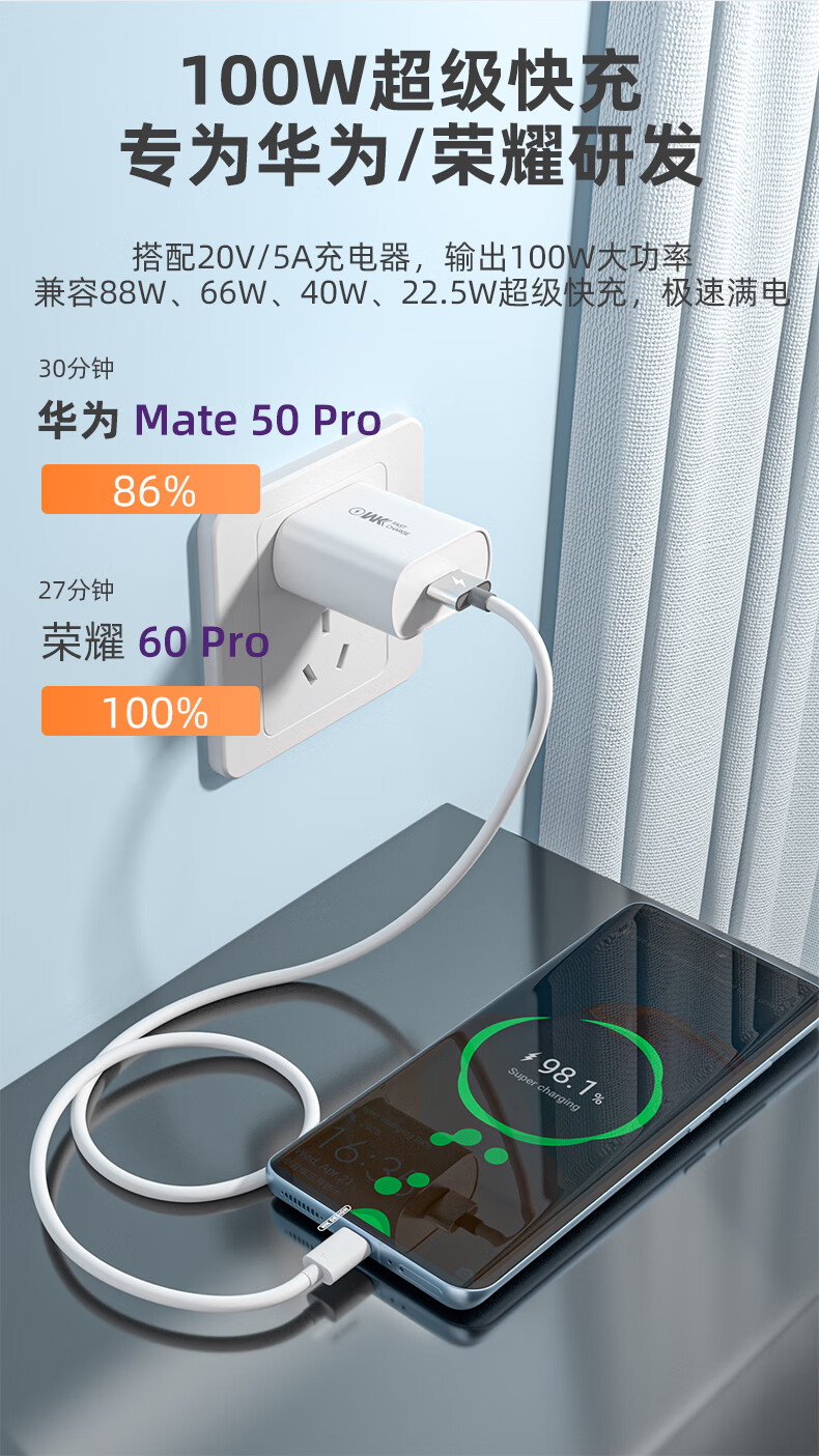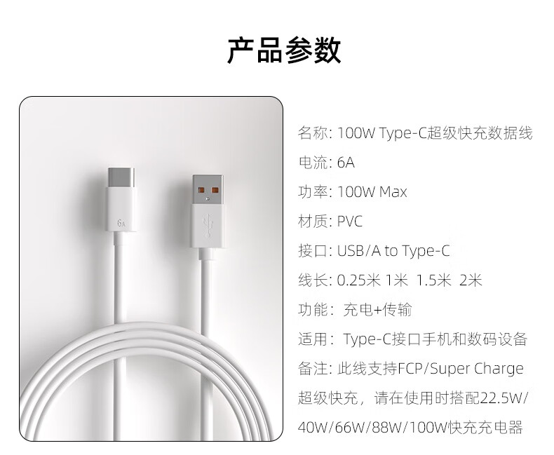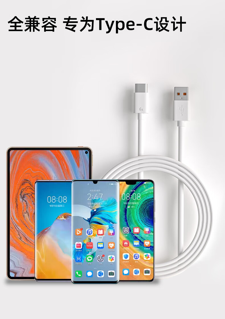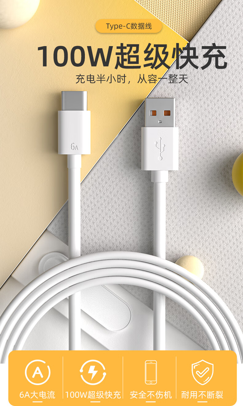 Zitai Type-c data cable 6A super fast charging 100W mobile phone charger cable suitable for Huawei Honor Mate70/60/50/40pro/P80 Xiaomi 1 meter white