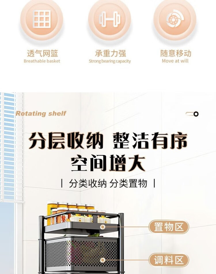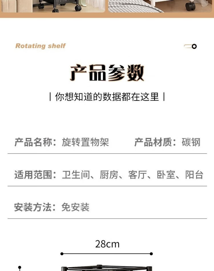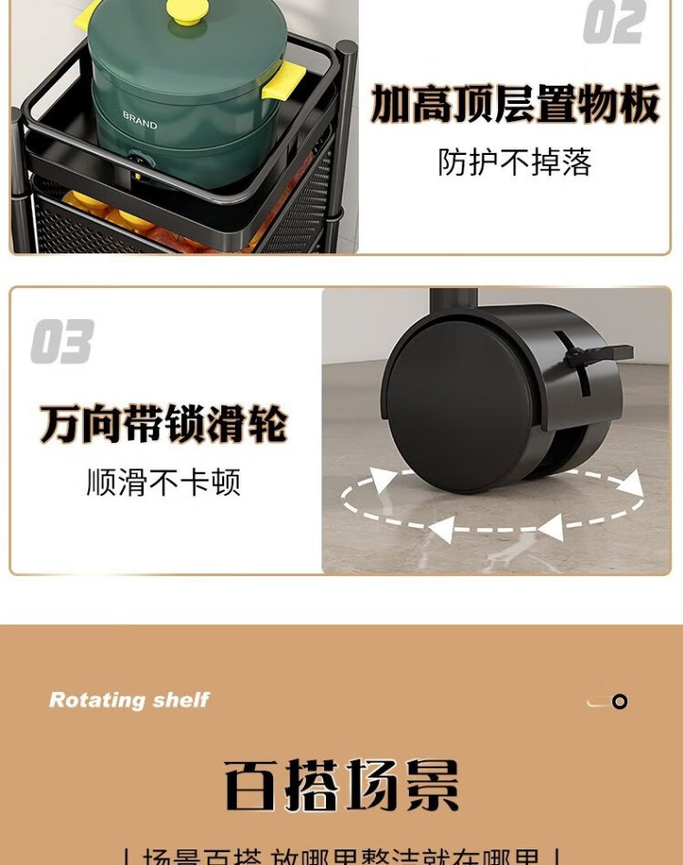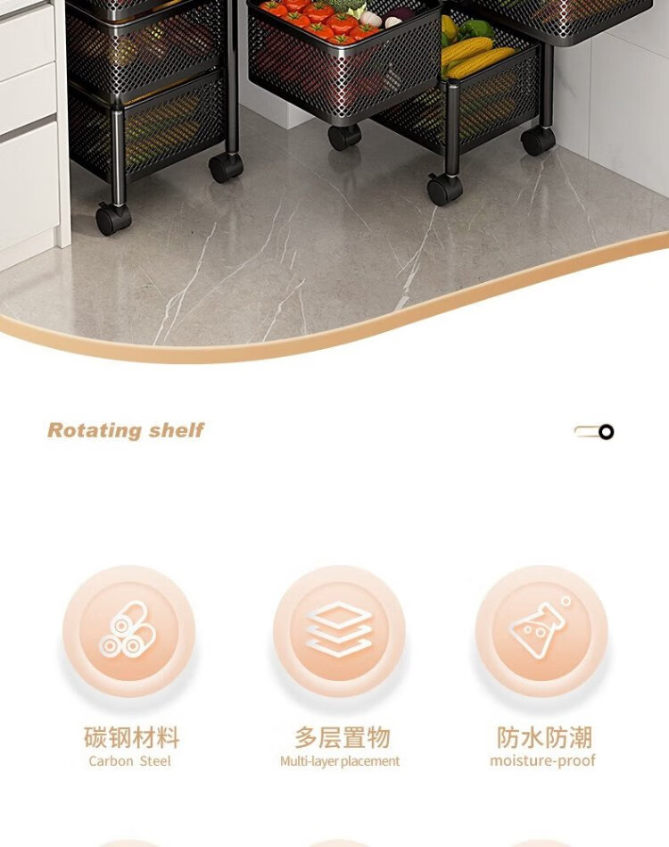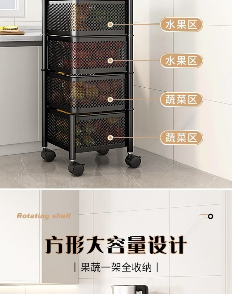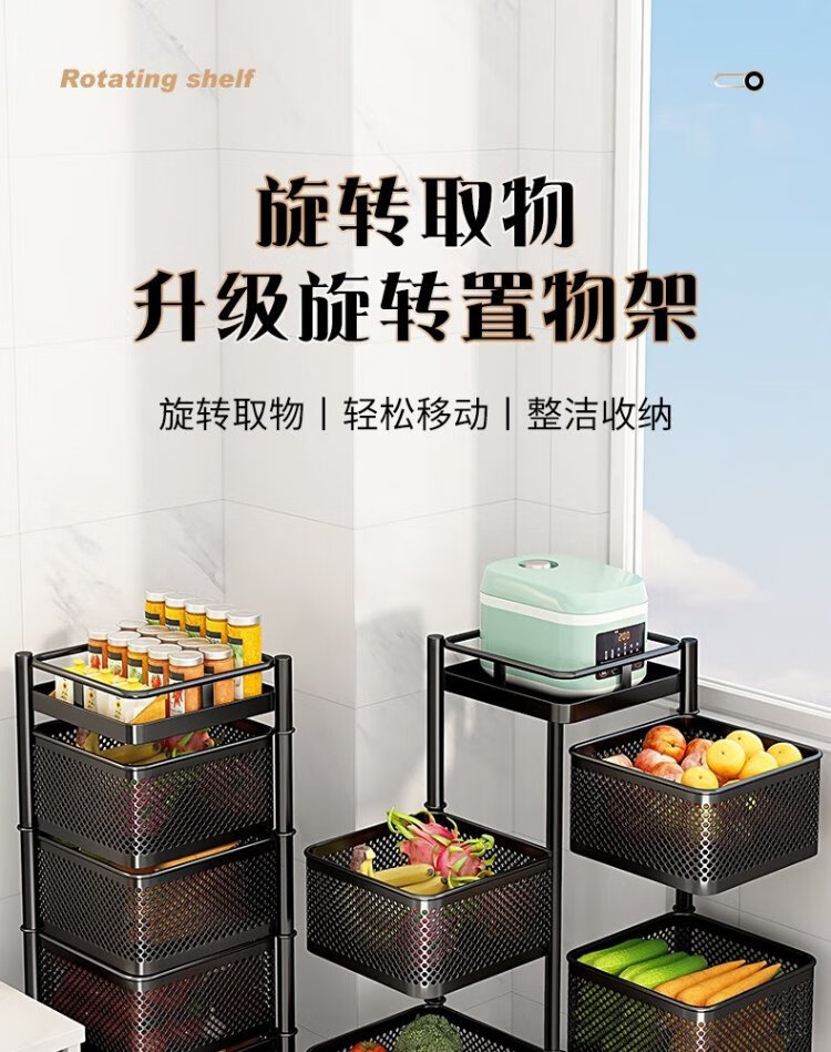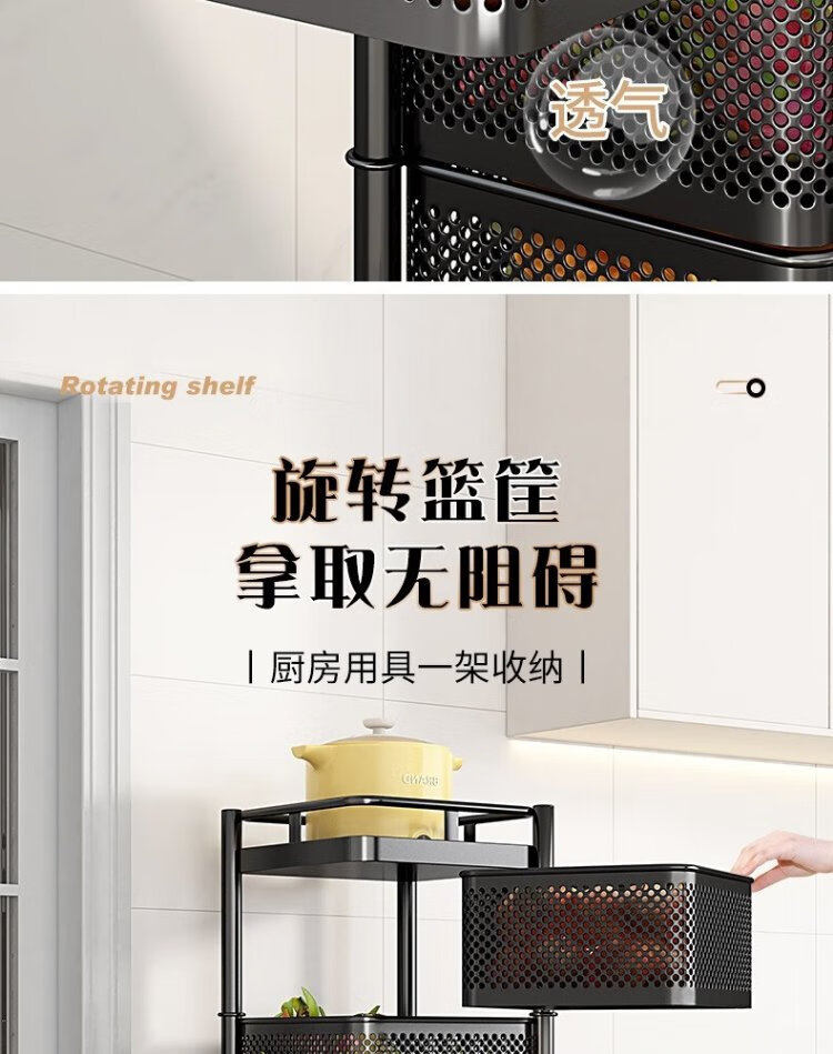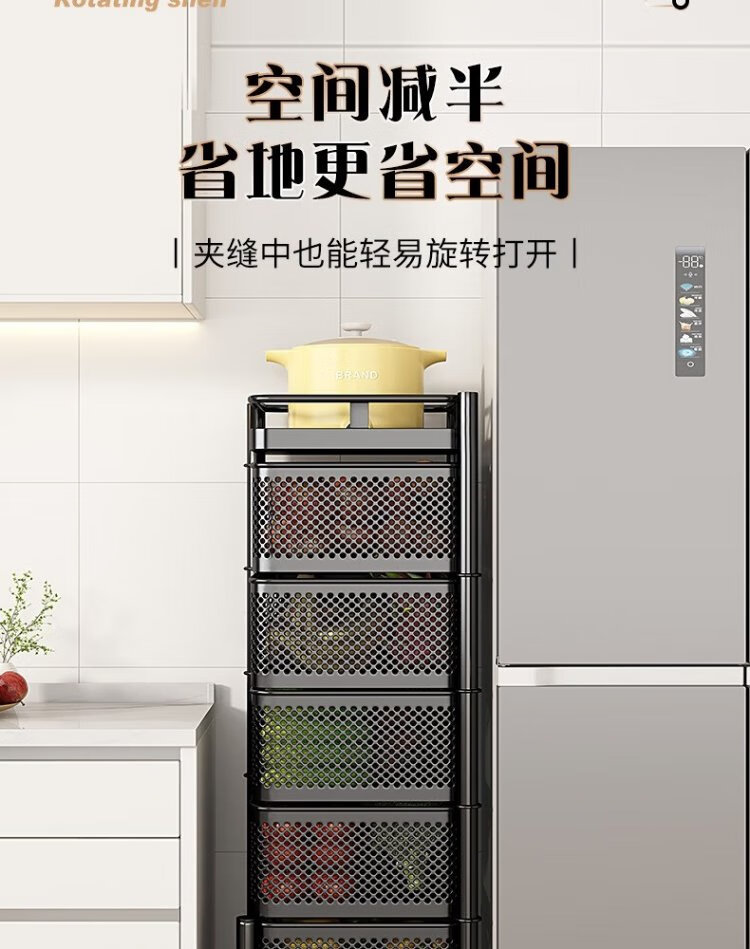 Yicai Nianhua Rotating rack kitchen floor-standing vegetable storage storage rack removable bathroom storage rack six layers 1118