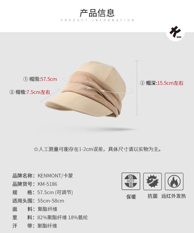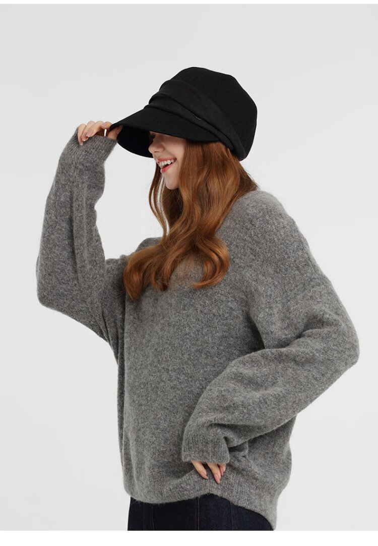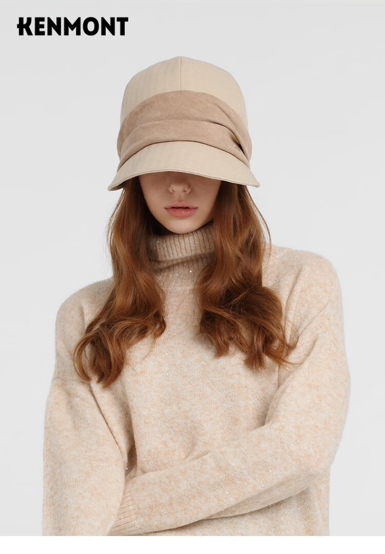 Kenmont sweet solid color all-match woolen beret face-showing little girl autumn and winter style round face duck tongue beret cap km-5186