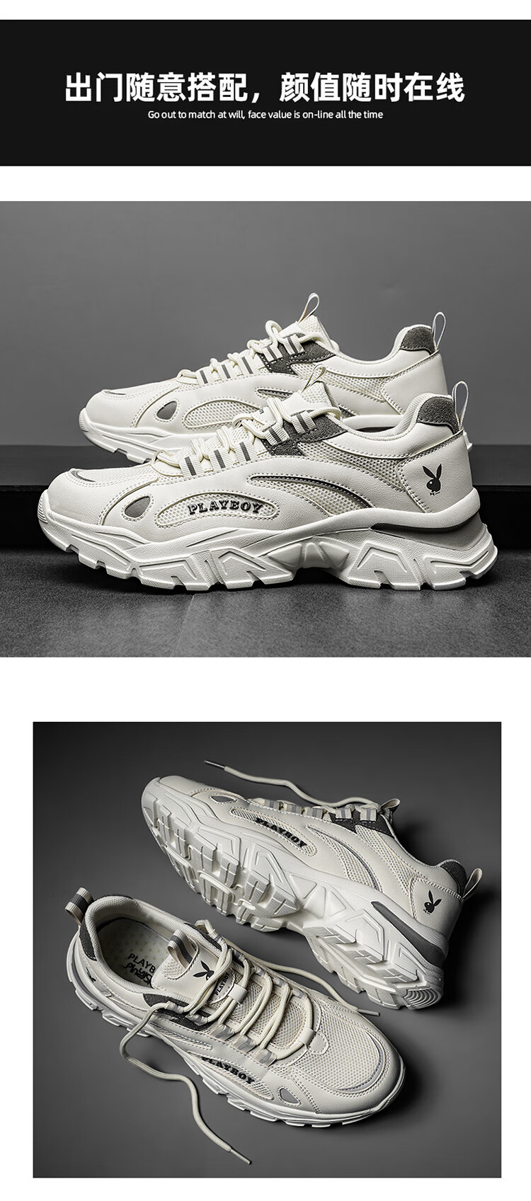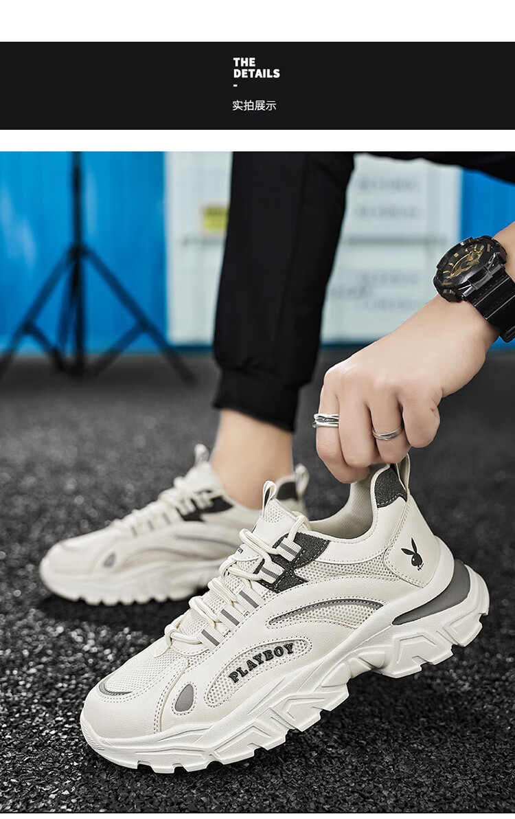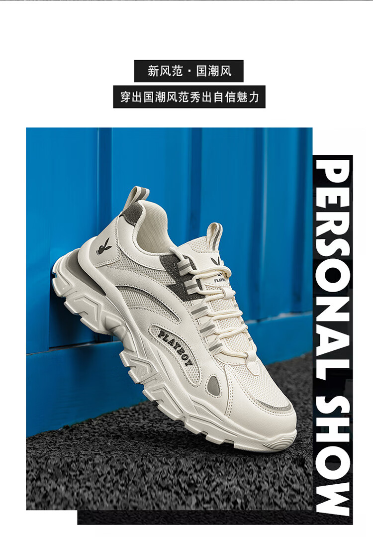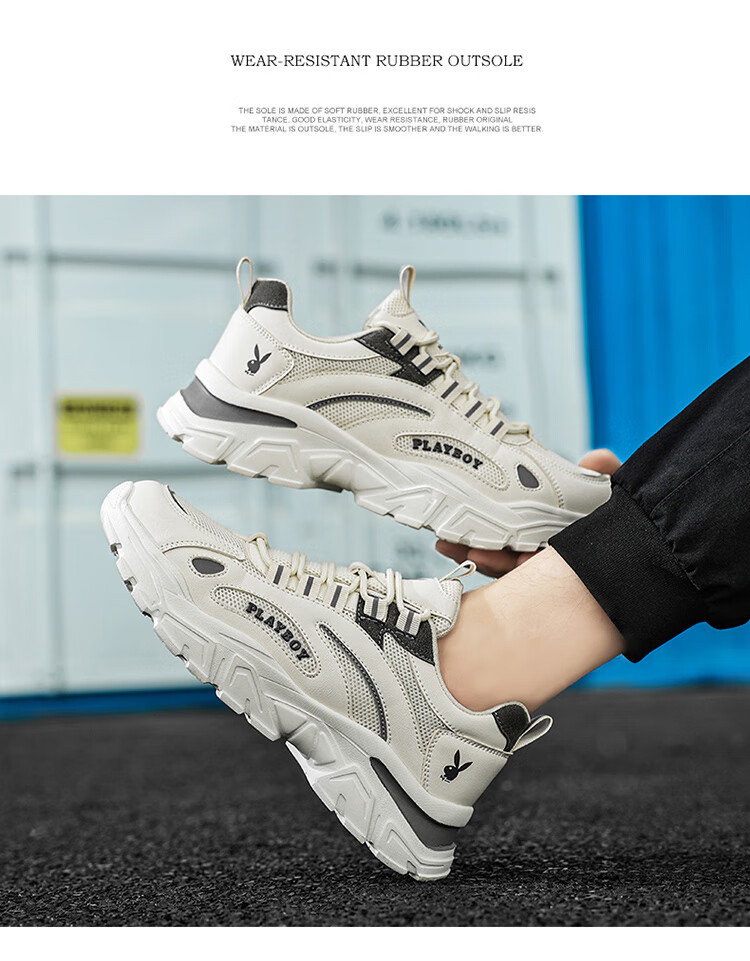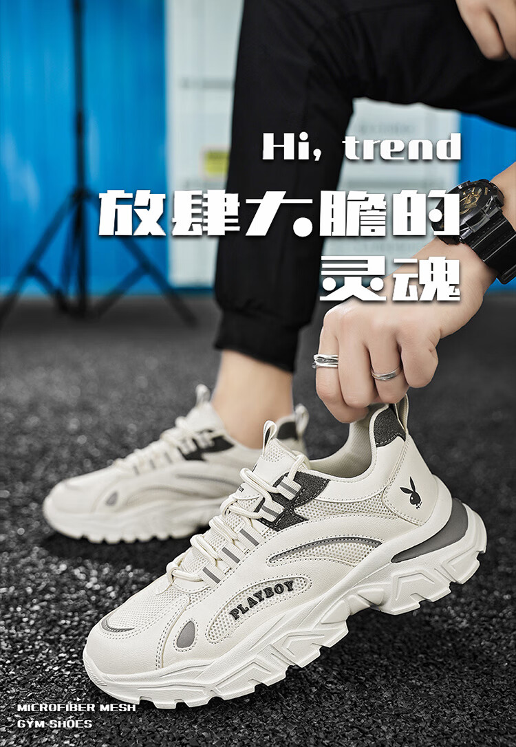Playboy (PLAYBOY) men's shoes 2025 autumn and winter casual shoes men's sports shoes men's versatile running shoes dad shoes beige 43