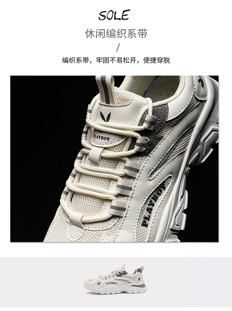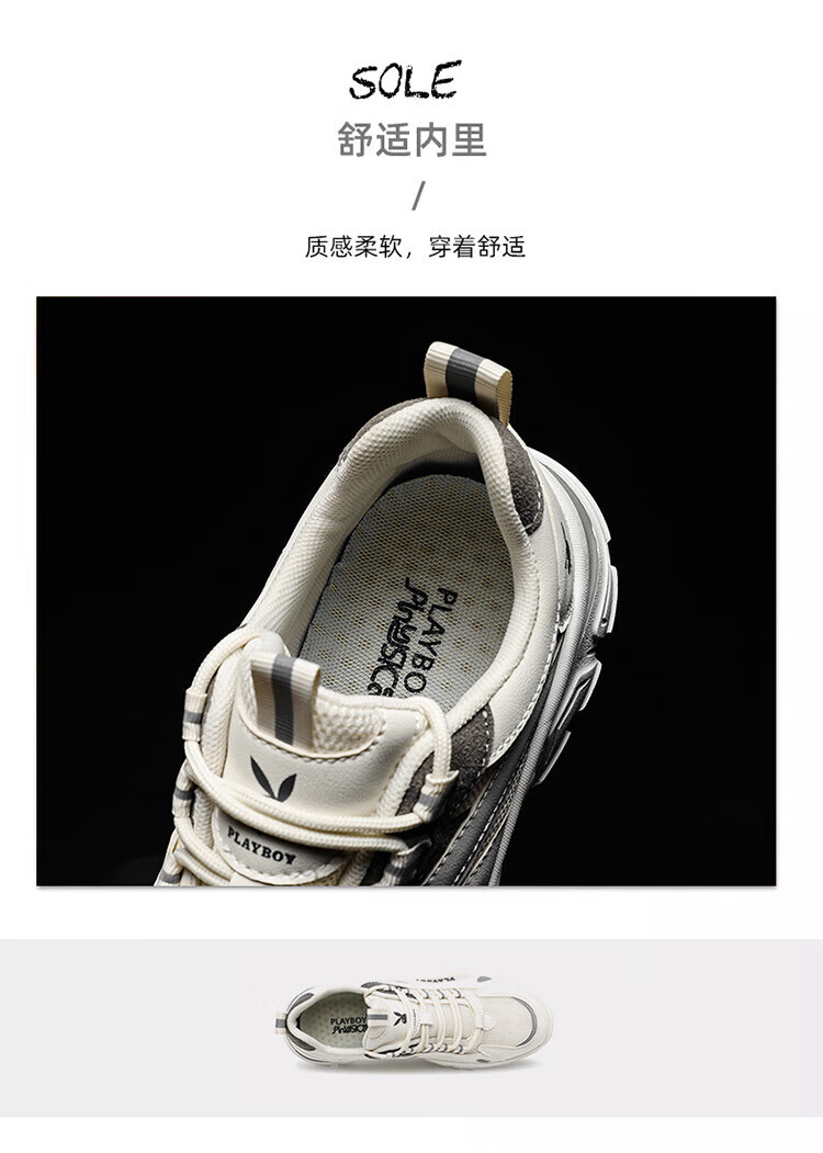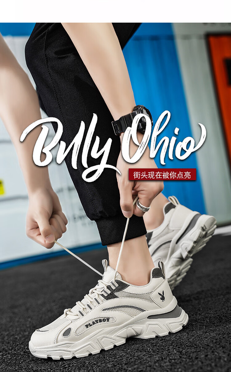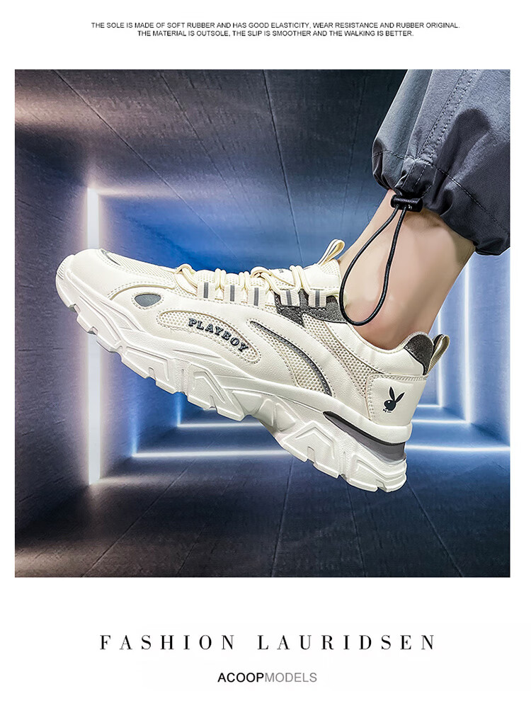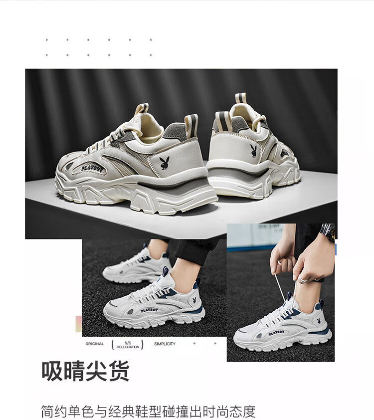 Playboy (PLAYBOY) men's shoes 2025 autumn and winter casual shoes men's sports shoes men's versatile running shoes dad shoes beige 43