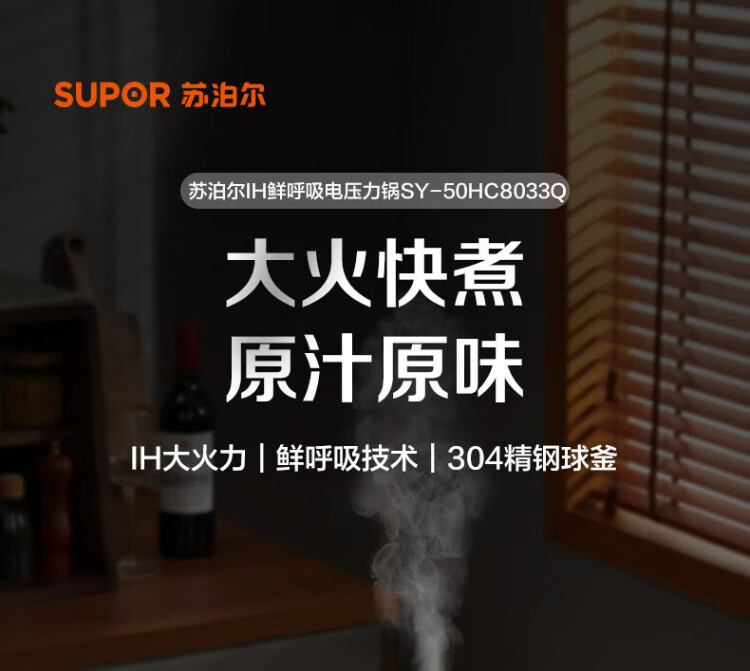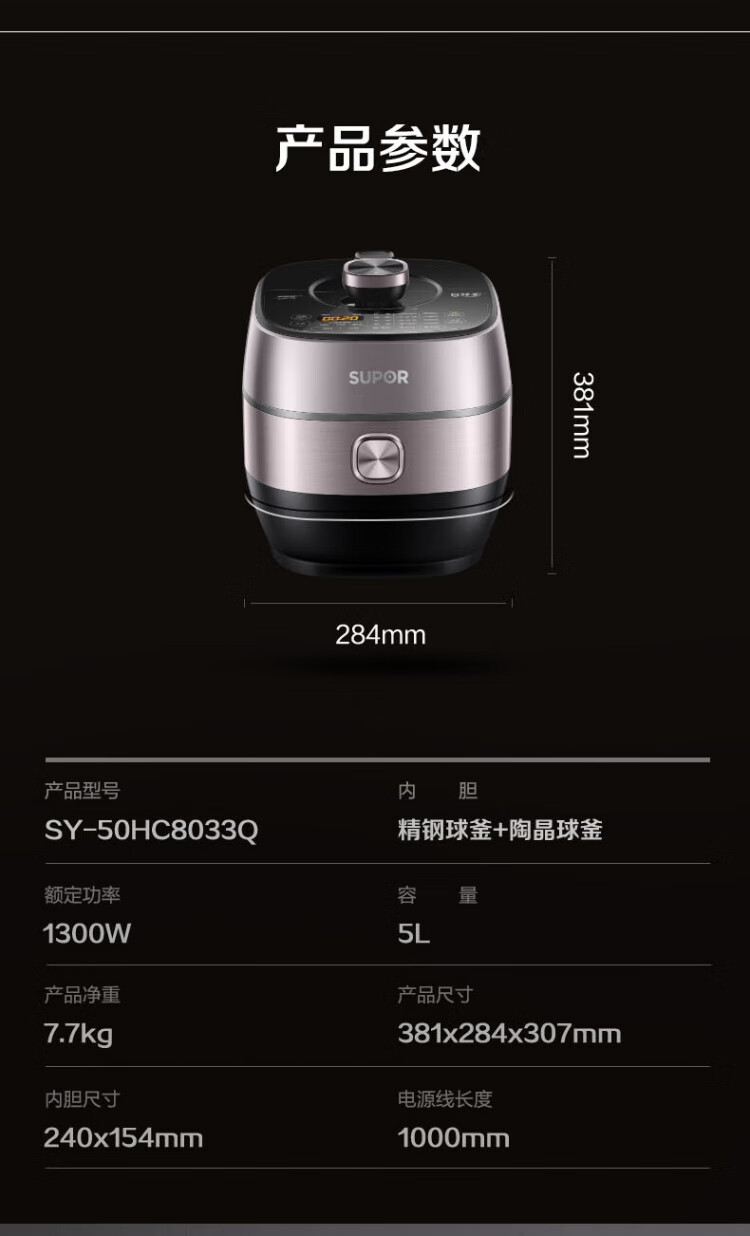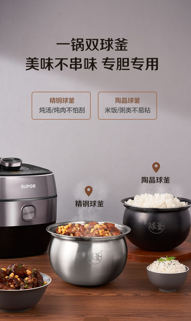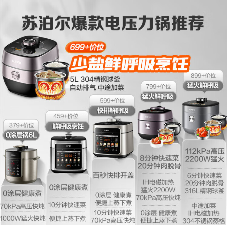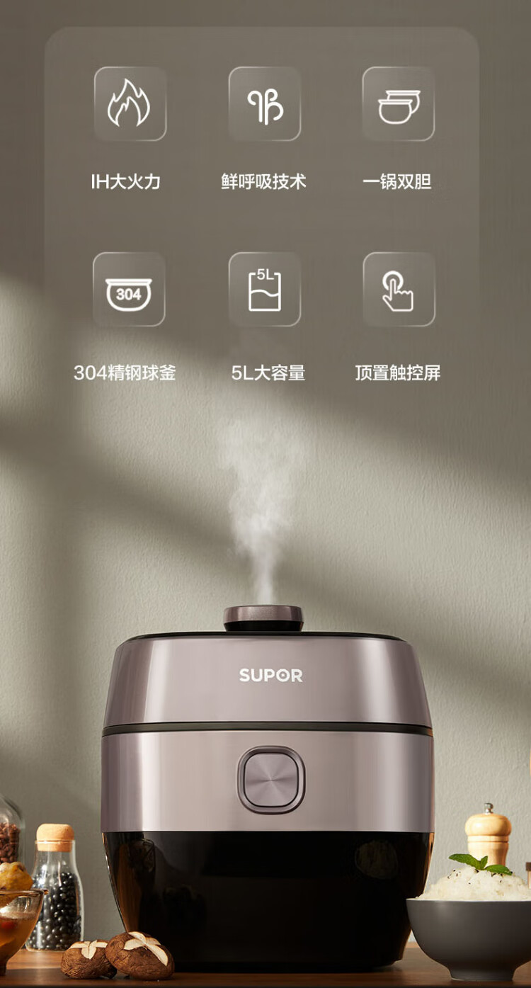 SUPOR national subsidy Fresh Breath IH electric pressure cooker 5L household automatic exhaust 304 ball kettle SY-50HC8033Q double bladder rice cooker pressure cooker for 4-6 people