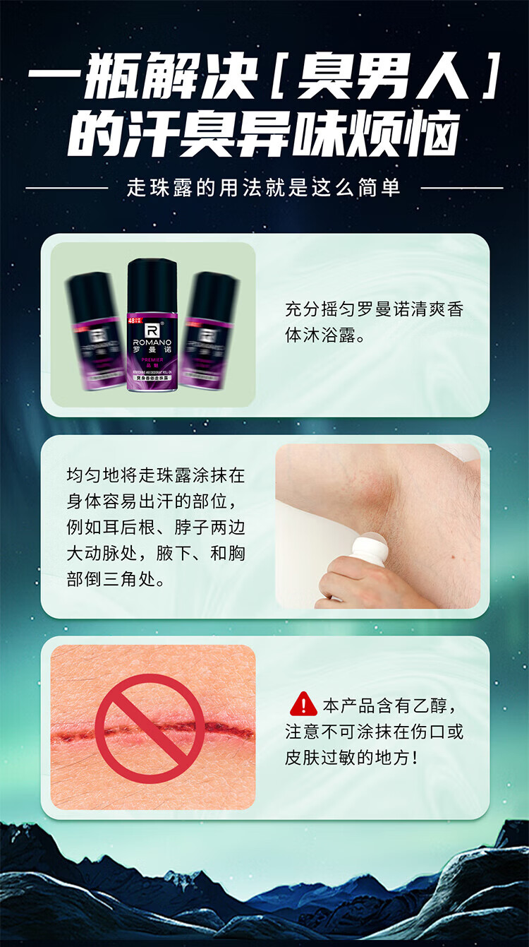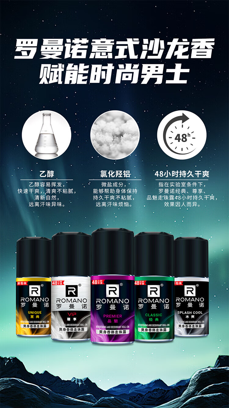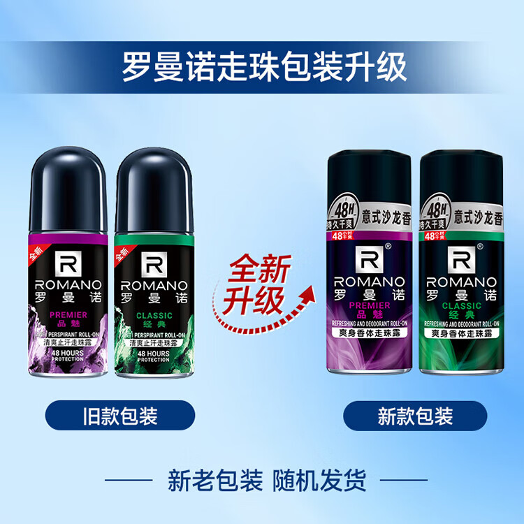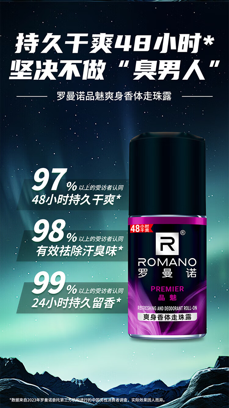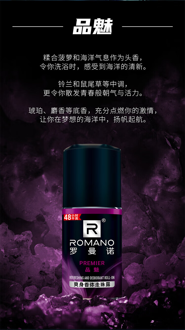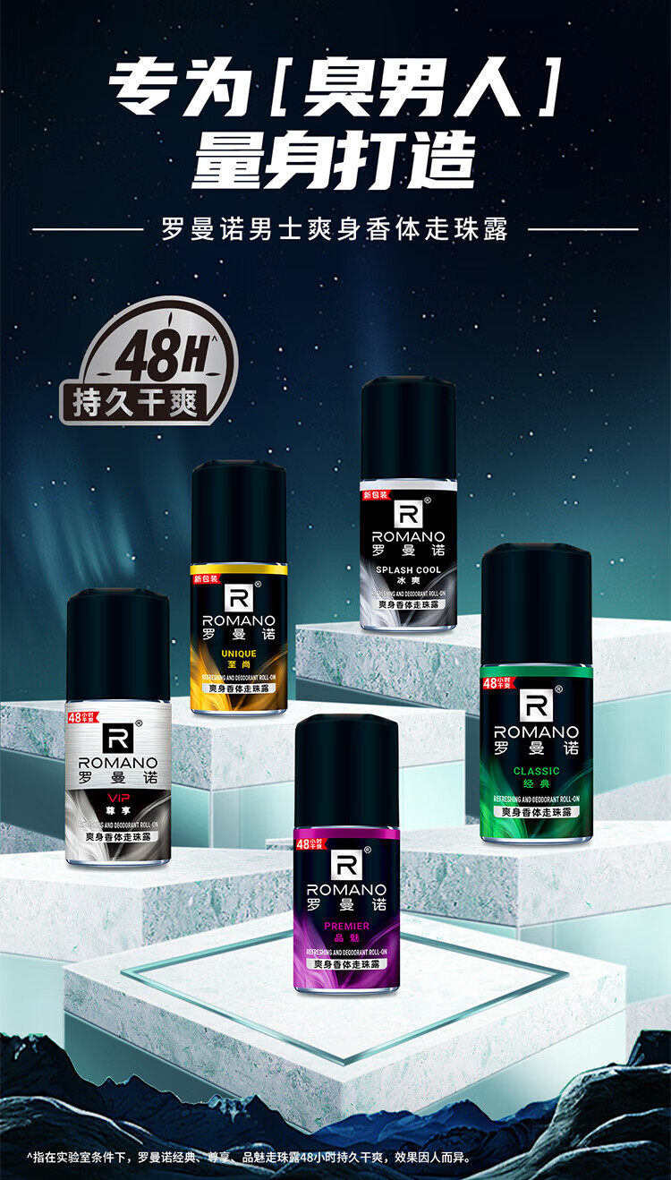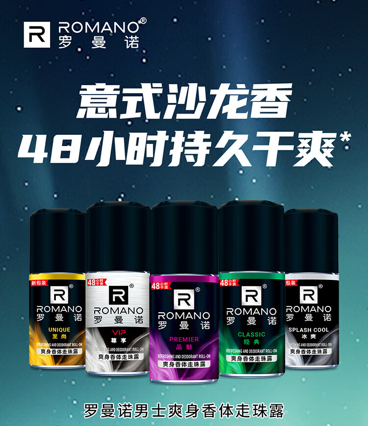 ROMANO Men's Roll-on Antiperspirant Lotion Underarm Skin Care Refreshing Antiperspirant Deodorant Long-lasting Dry Pinmei Roll-on Drop Lotion 40ml