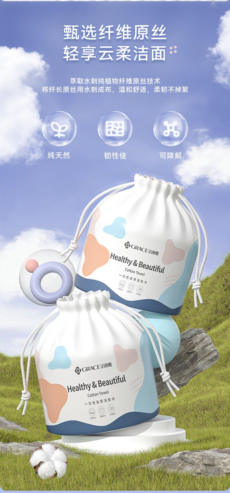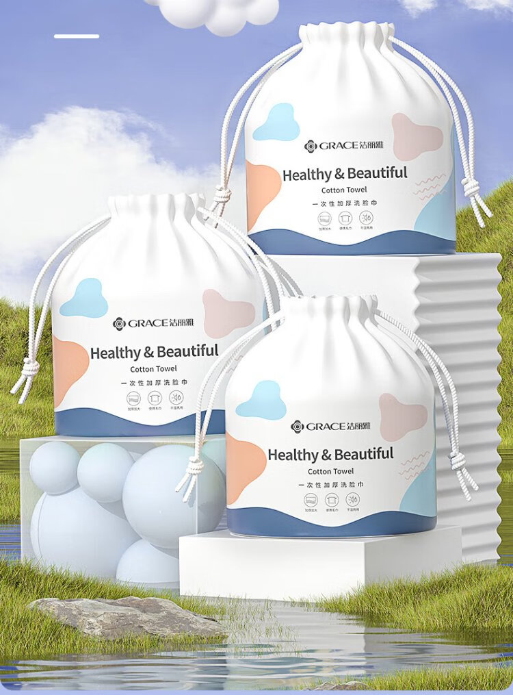 Grace Disposable Facial Cleansing Towels Thickened Maternal and Infant Wet and Dry Soft Towels Pearl Pattern Water-Absorbent Facial Cleansing Towels 60 Draws*3 Pack