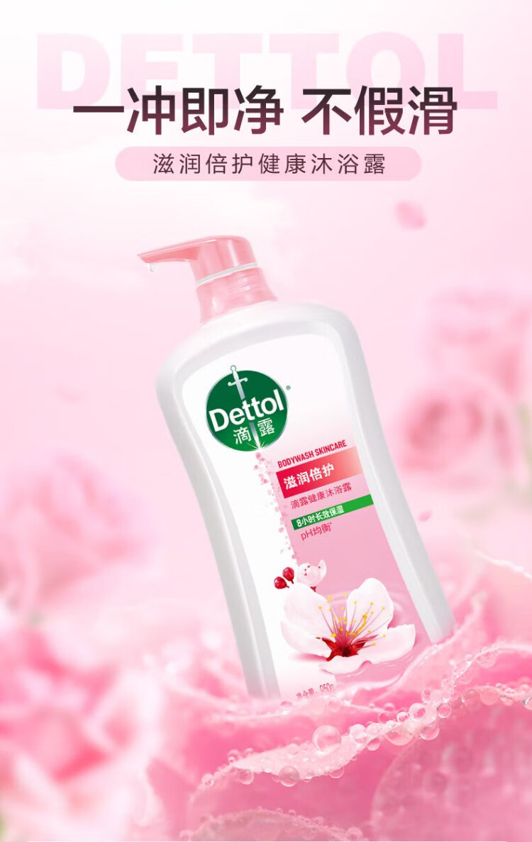 Dettol shower gel, moisturizing and moisturizing 950g shower gel for men and women, long-lasting fragrance, anti-itch floral fragrance