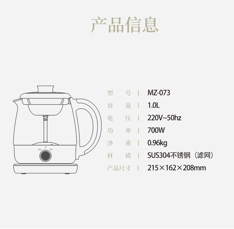 Mingzhan Tea Maker Glass Electric Kettle MZ-073