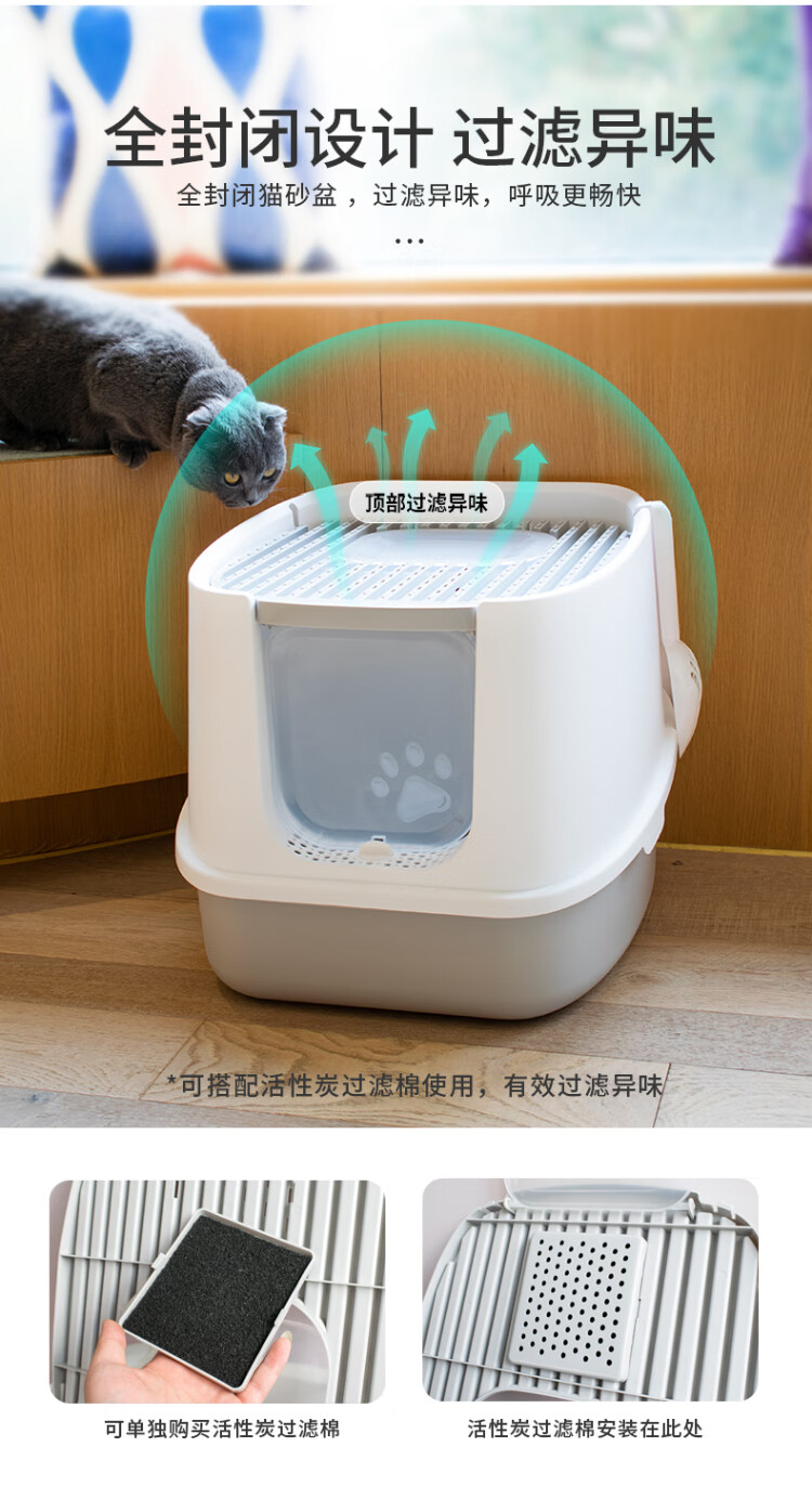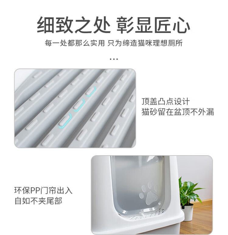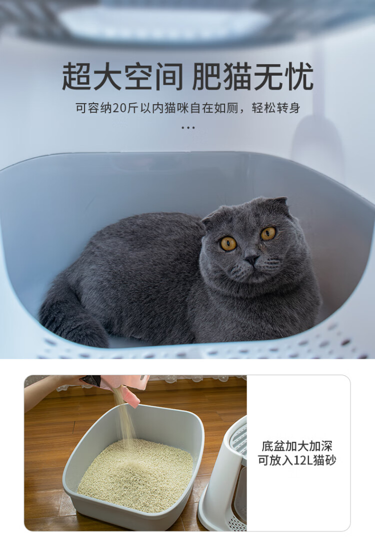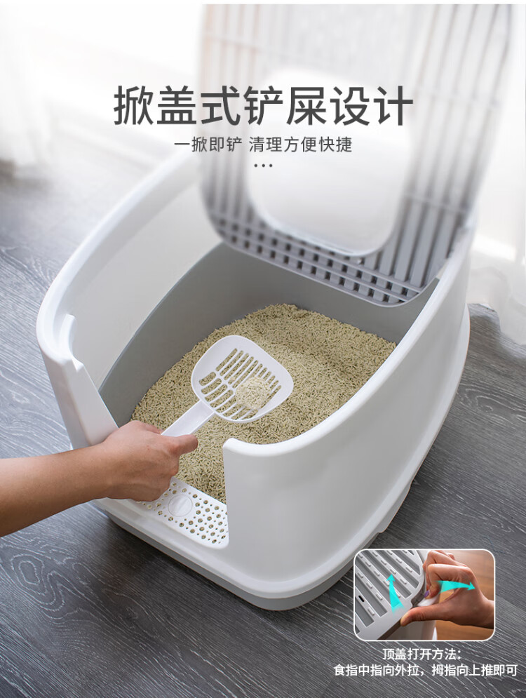 Leyoupai cat litter box fully enclosed large cat toilet anti-splash cat litter box cat sand box cat litter box gray and white