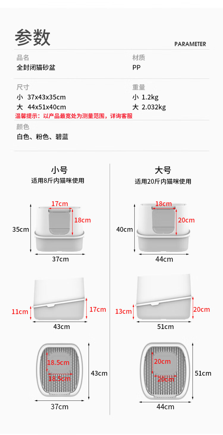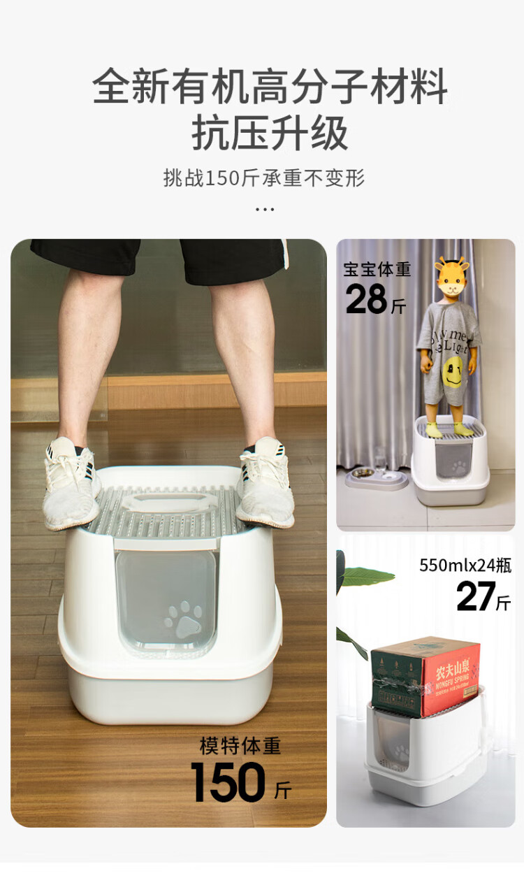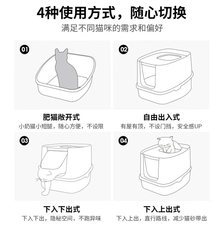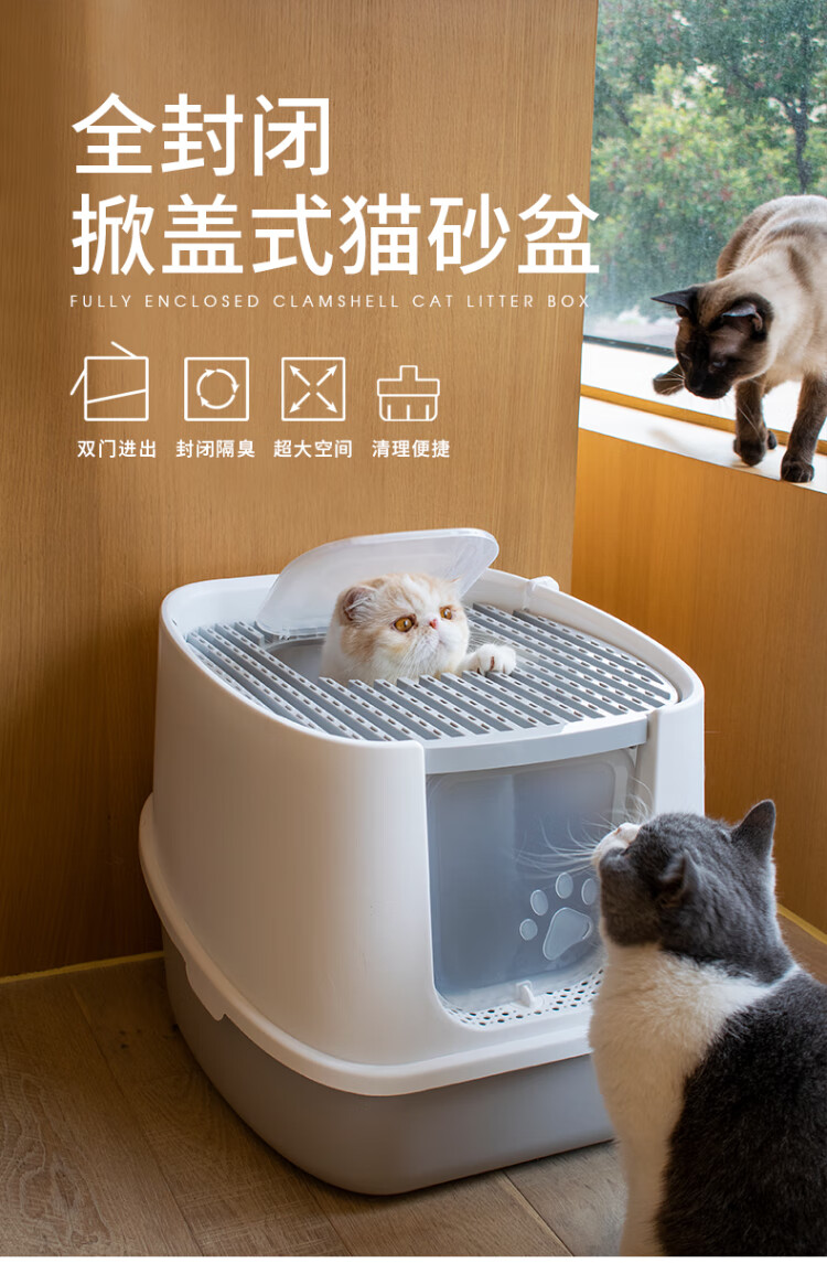 Leyoupai cat litter box fully enclosed large cat toilet anti-splash cat litter box cat sand box cat litter box gray and white