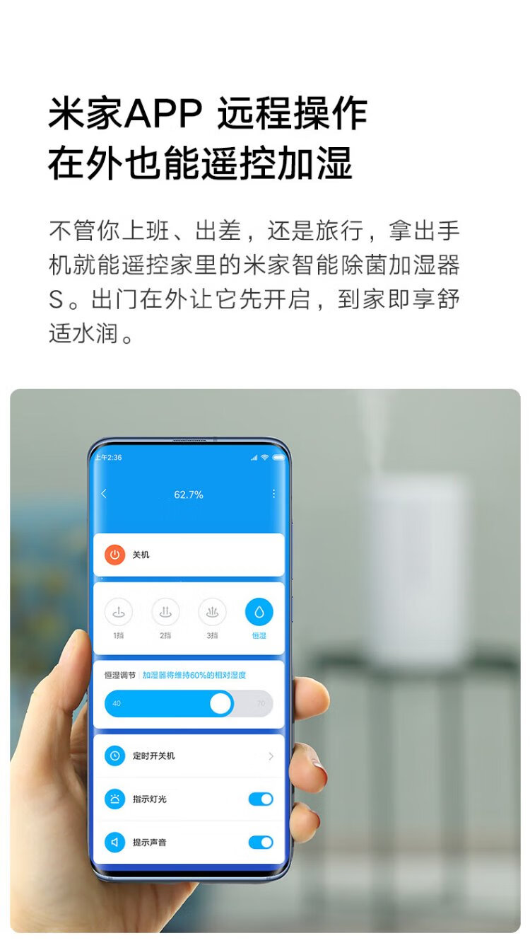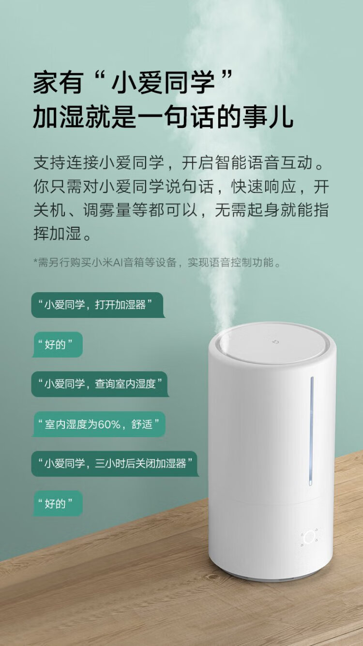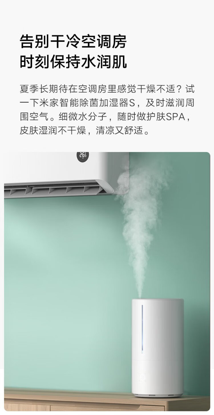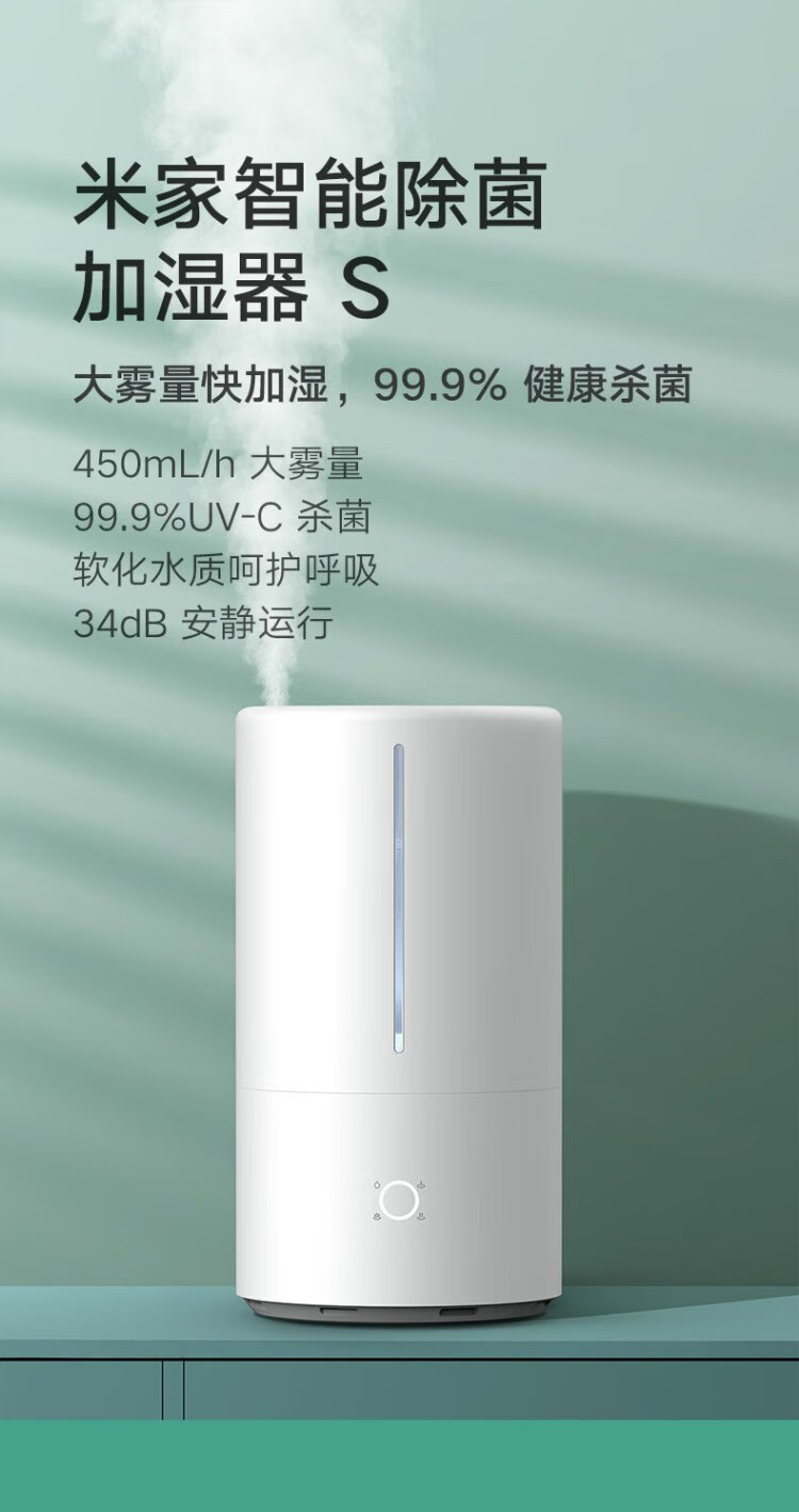 Mijia Xiaomi Smart Sterilizing Humidifier S Humidifier Bedroom Light Sound Home Office Desktop Low Noise Air Humidification UV-C Sterilization 4.5L Large Capacity MJJSQ03DY
