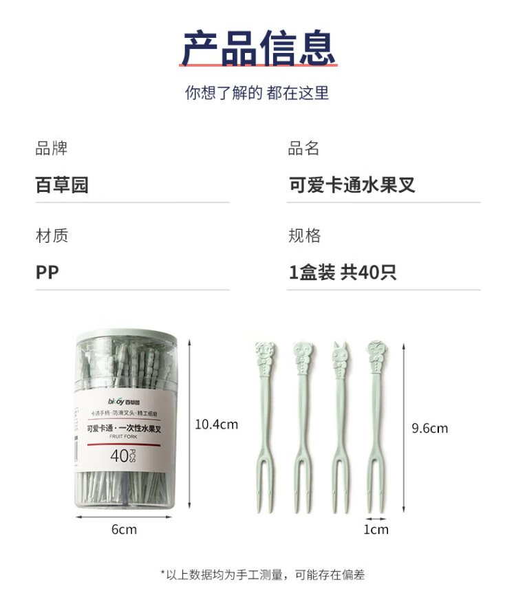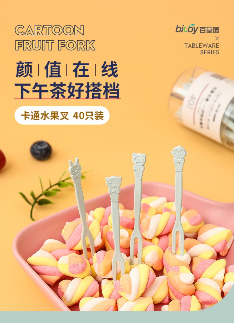 Baicao Garden Cartoon Disposable Fruit Fork Fruit Fork Fruit Fork Cake Dessert Fork 40 Pack