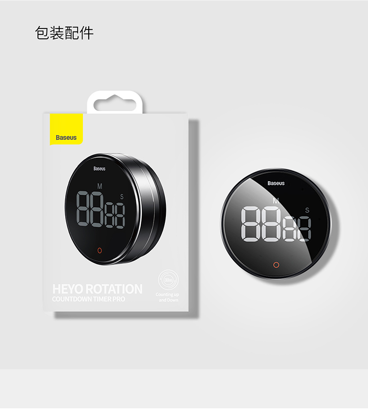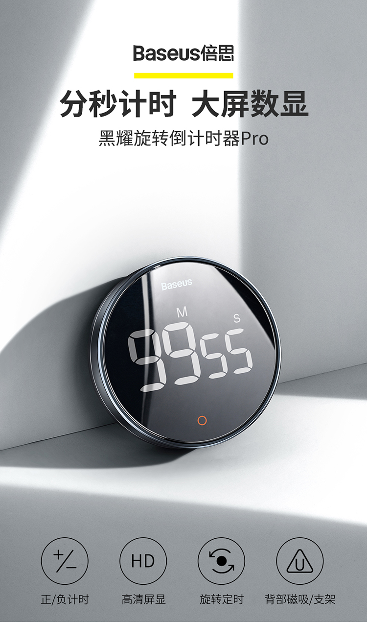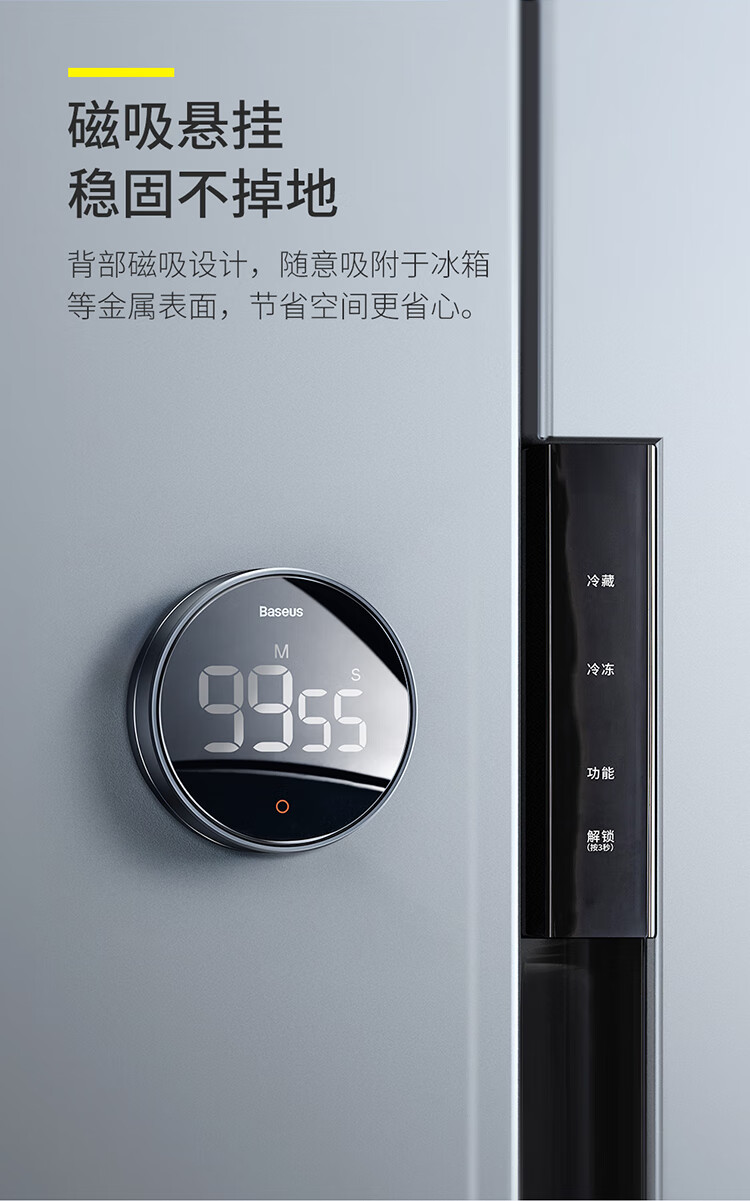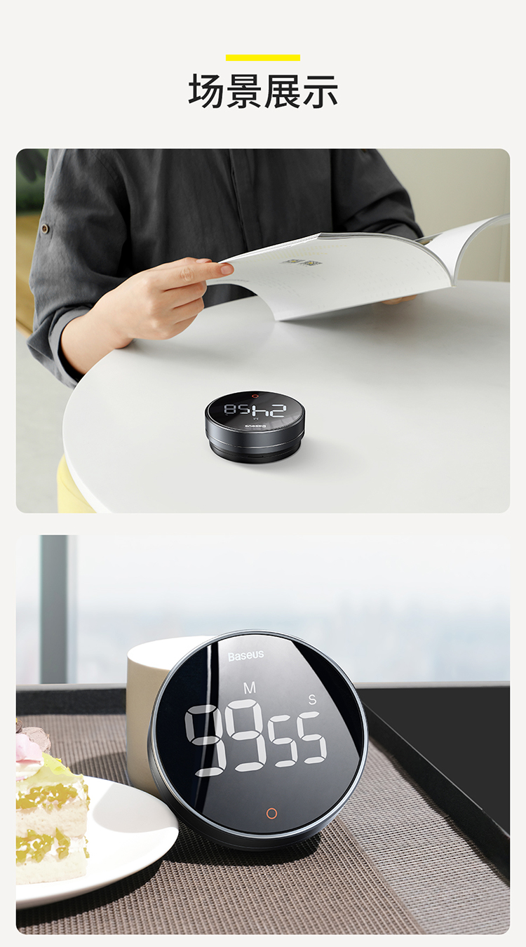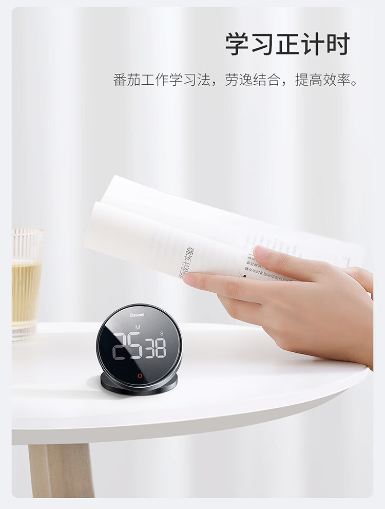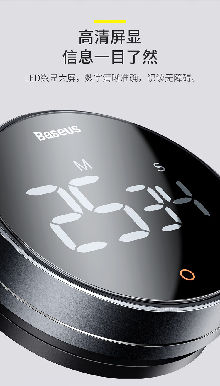 Baseus electronic timer alarm clock children's stationery kitchen timing baking student self-study time management magnetic multi-functional metal LED visual digital light tone self-discipline timing clock