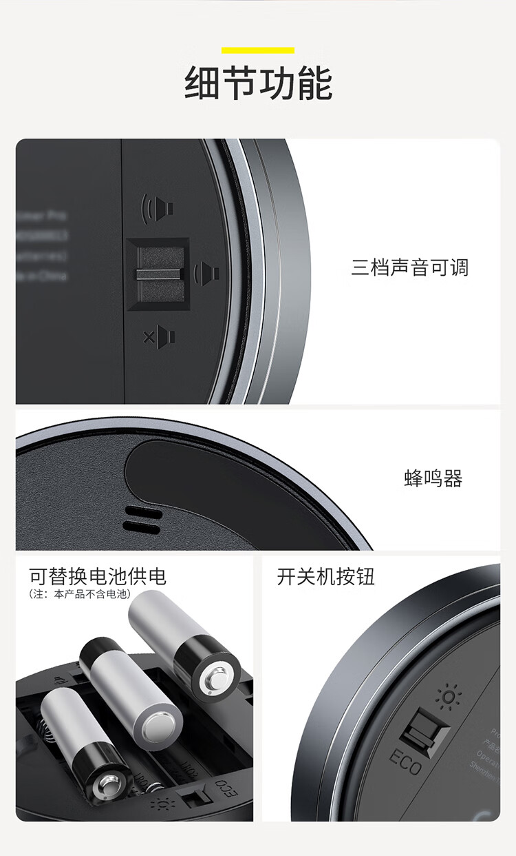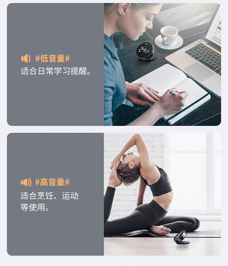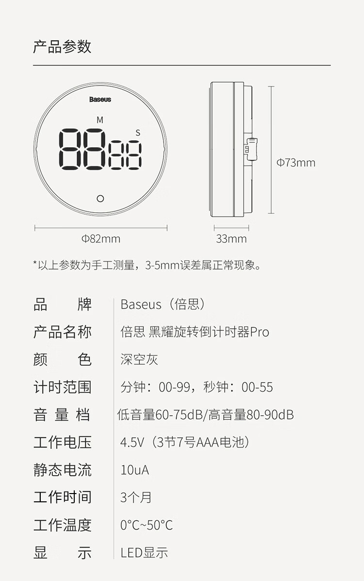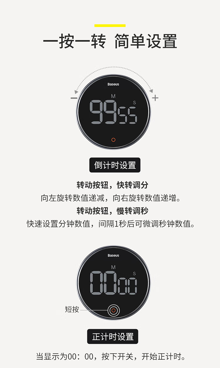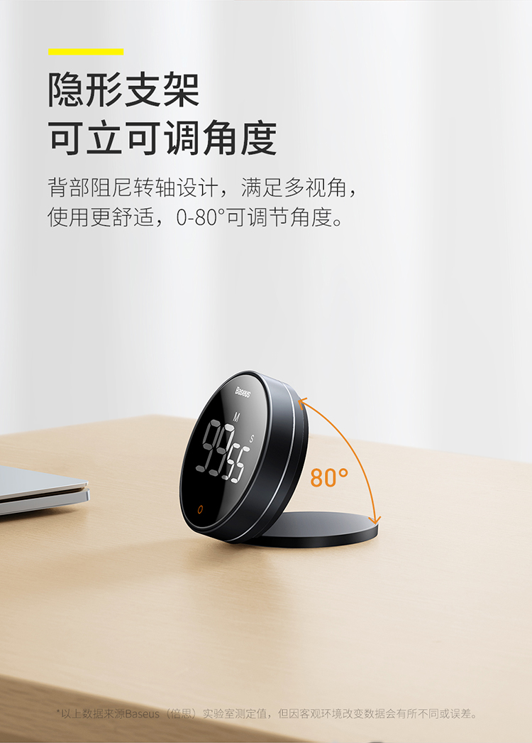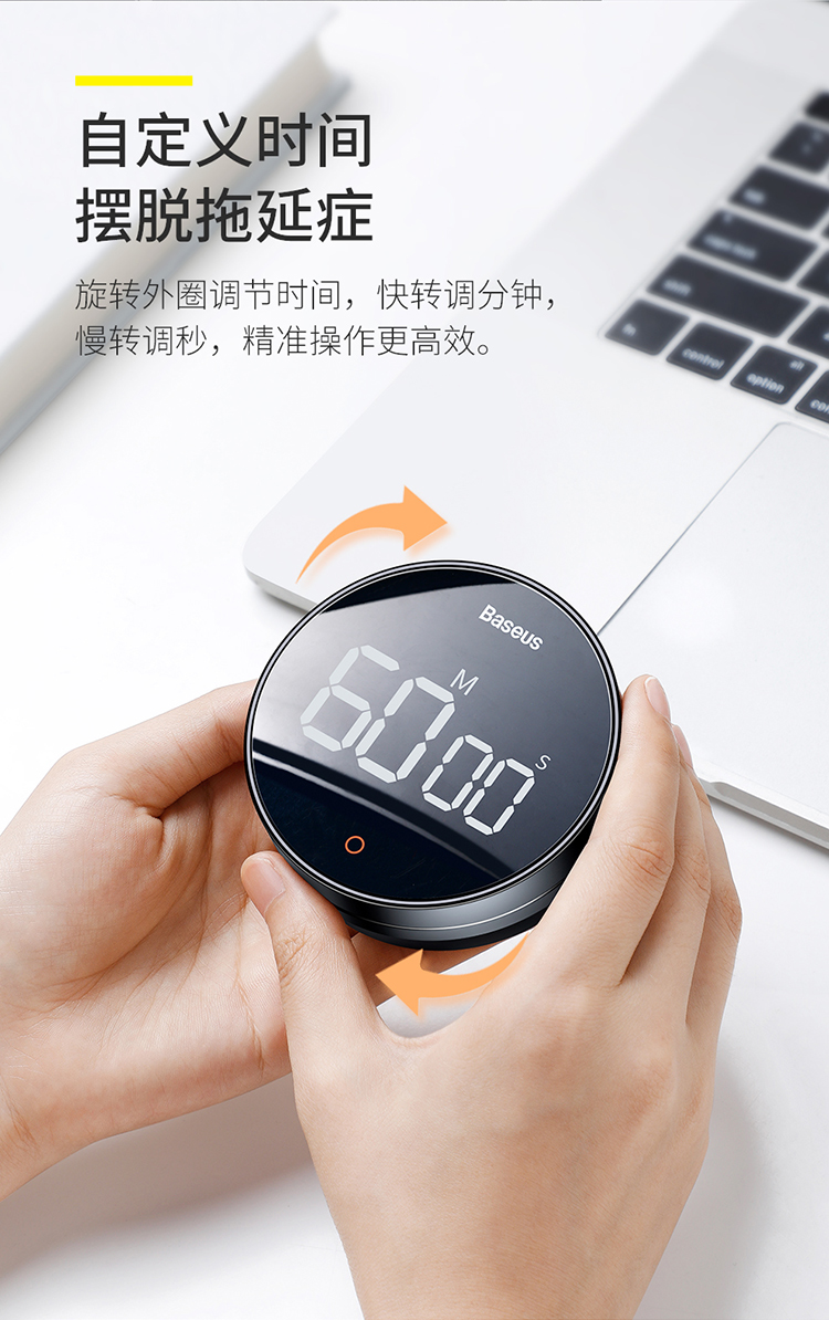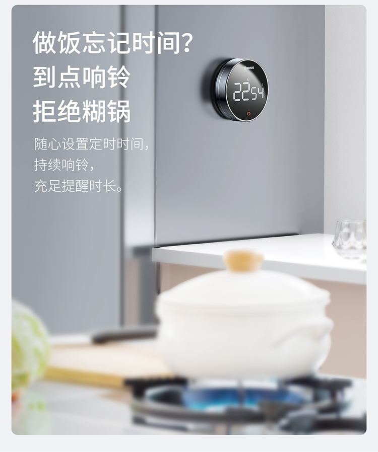 Baseus electronic timer alarm clock children's stationery kitchen timing baking student self-study time management magnetic multi-functional metal LED visual digital light tone self-discipline timing clock