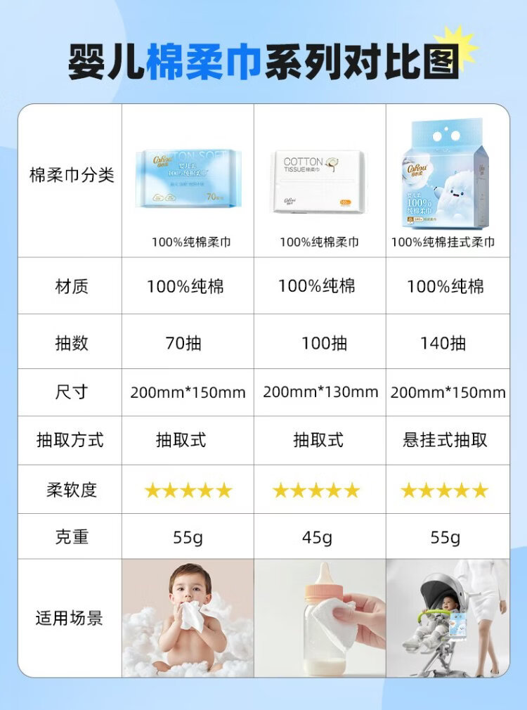 KeXinRou Cotton Soft Towel for Infants and Toddlers 100% Cotton Face Towel 100 Pumps 6 Packs of Disposable Face Cleansing Towels