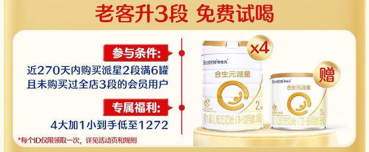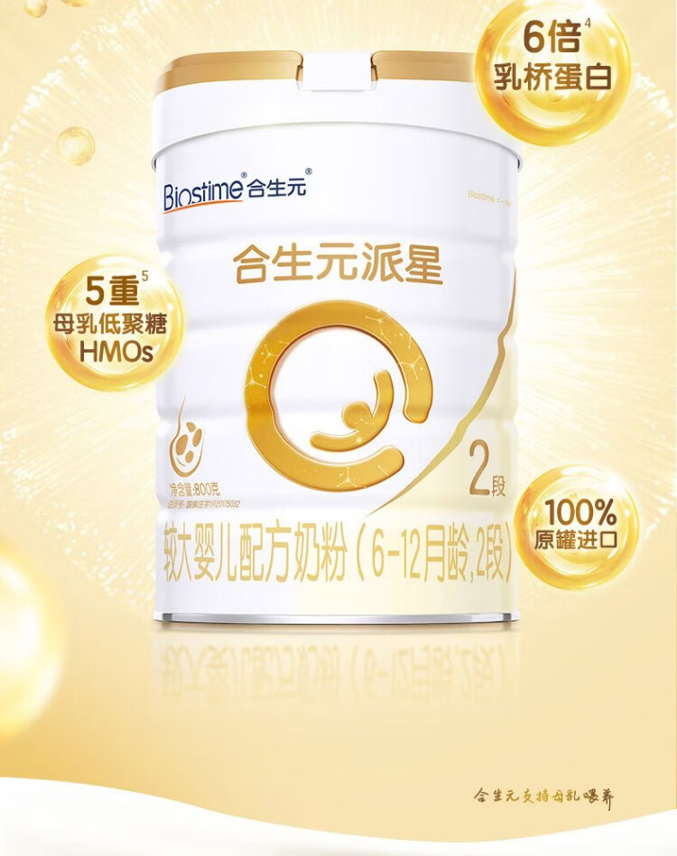 BIOSTIME Paixing older infant formula milk powder 2 stages (6-12 months) new national standard 800g*4 cans