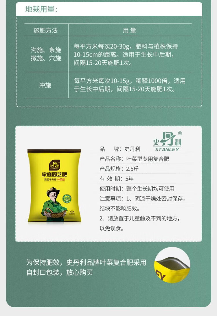 Stanley organic compound fertilizer for vegetables: leek, rape, lettuce, coriander, household vegetable fertilizer, leafy vegetable type 2.5 Jin Jin equals 0.5 kg
