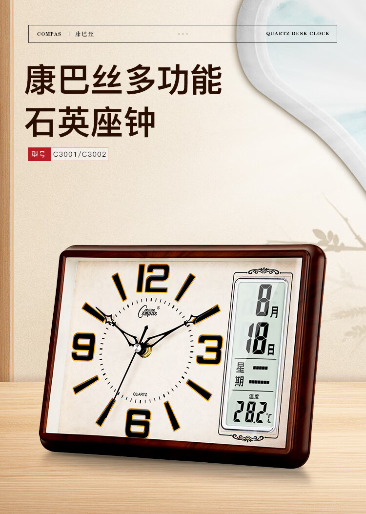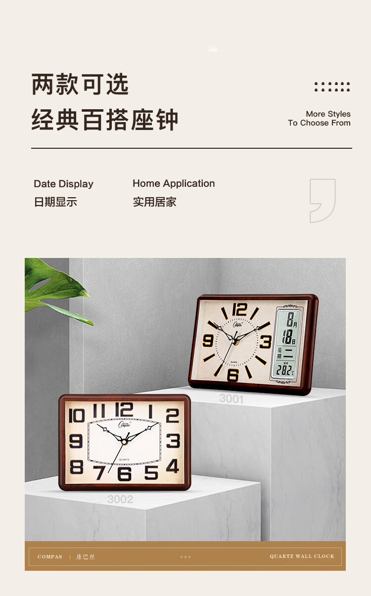 Compas table clock living room simple table clock creative quartz clock fashion clock modern bedside clock 3002 imitation wood