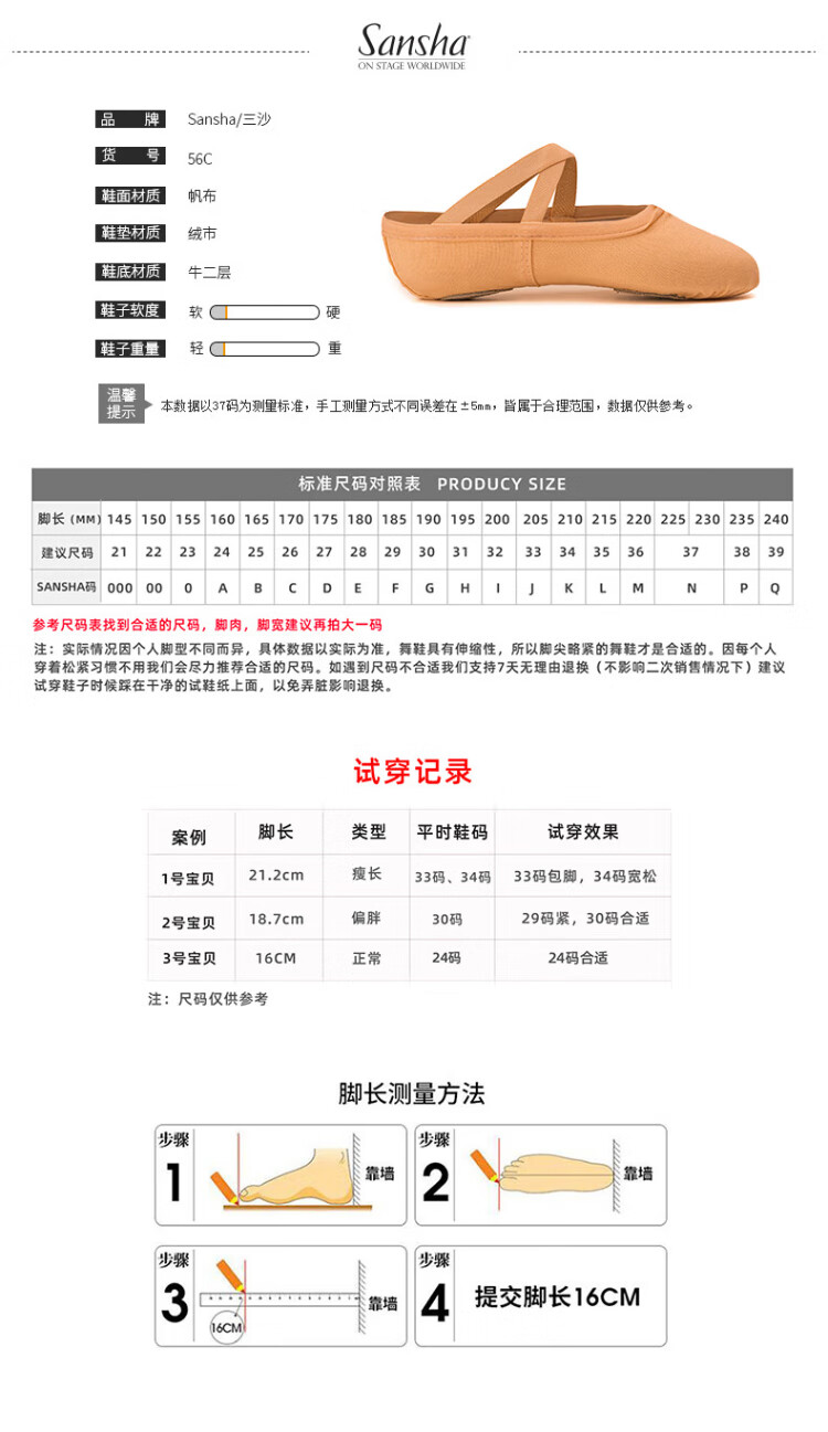 Sansha ballet training shoes cotton canvas dance shoes children and girls soft-soled shoes dancing cat claw shoes NO.56 pink 30
