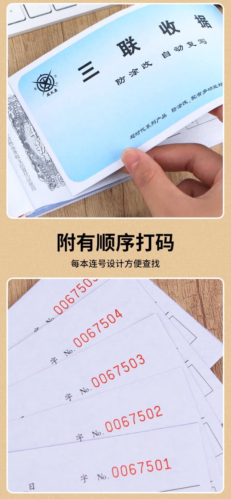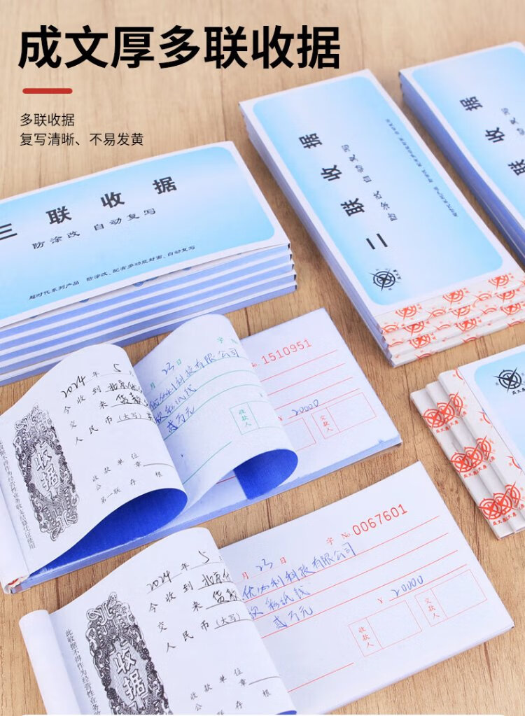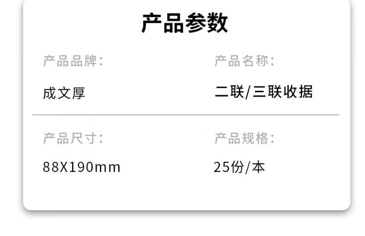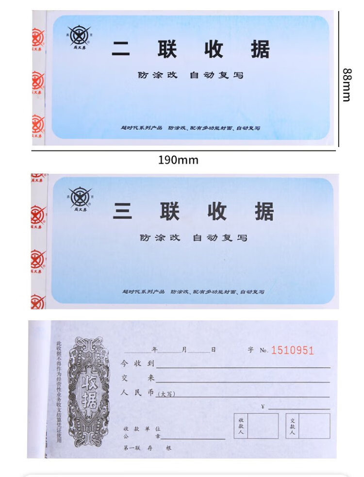 Cheng Wenhou, a time-honored Chinese brand, triple carbonless copy receipt, 19*8.8cm, payment receipt, 25 copies/book, 8 books, 301-259-4