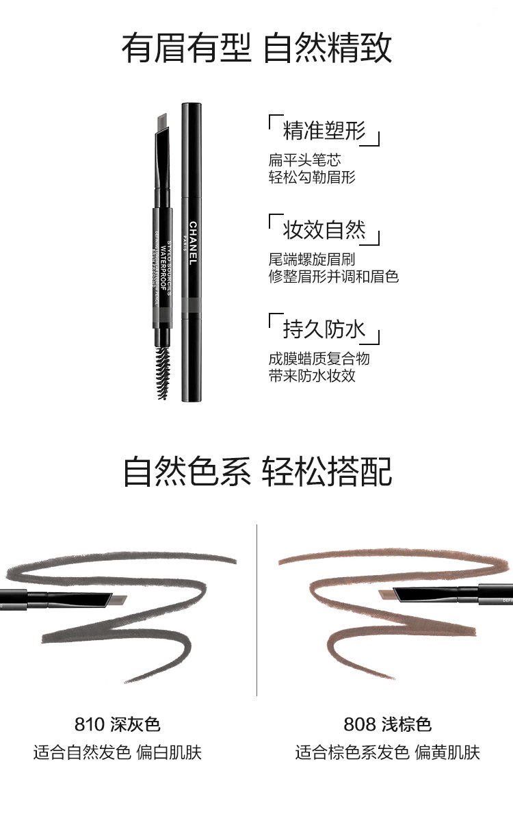 Chanel long-lasting waterproof eyebrow pencil 0.27g (810 dark gray) natural three-dimensional and not easy to fade. Gift for girls and wives