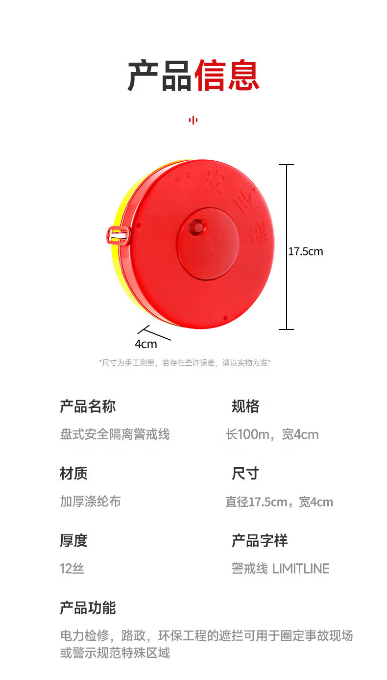 Tengchi cordon warning belt safety warning isolation belt construction fence telescopic warning rope thickened 100 meters CY4376