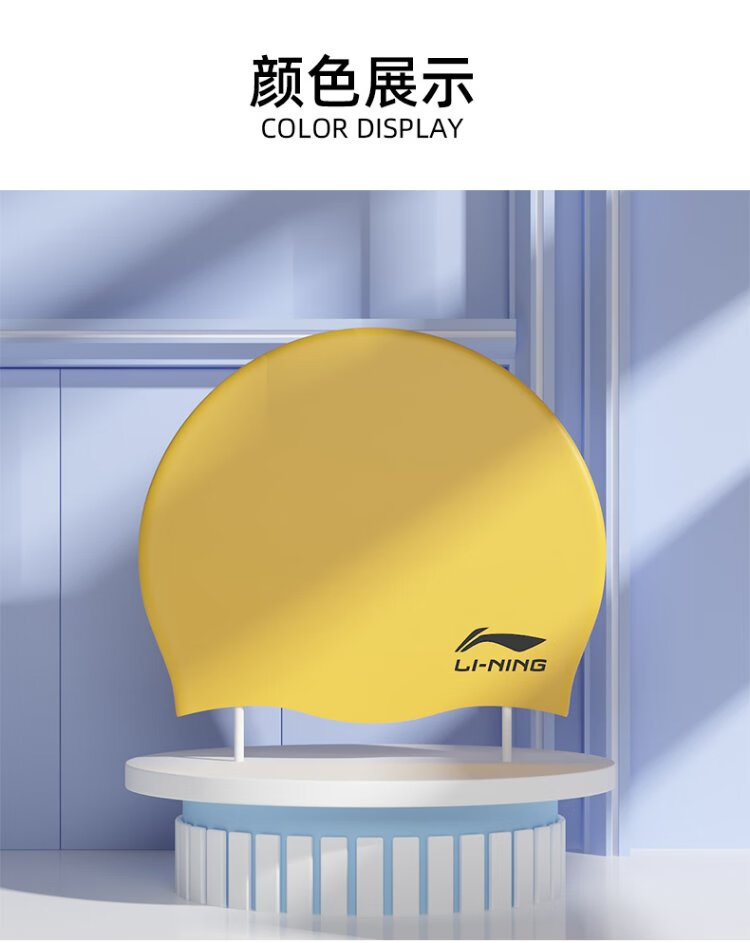 Li Ning LI-NING waterproof silicone swimming cap for men and women that does not strangle the head, comfortable swimming long hair hair care swimming cap LSMR808-1