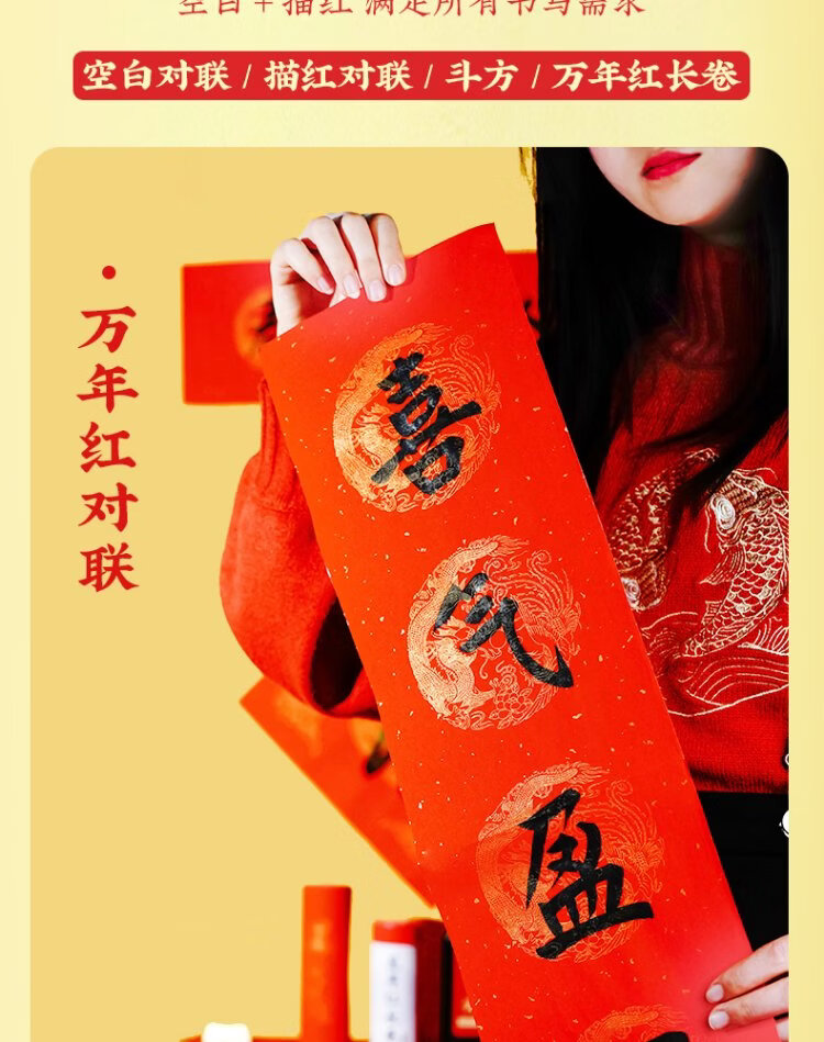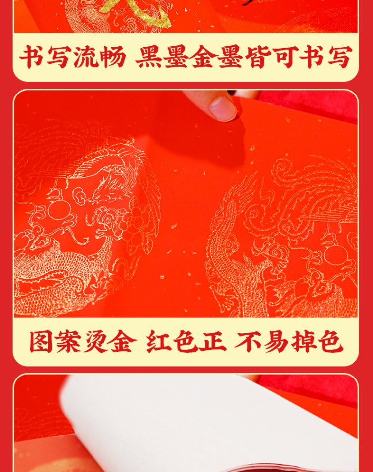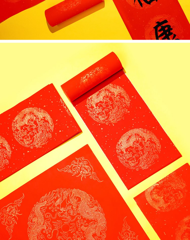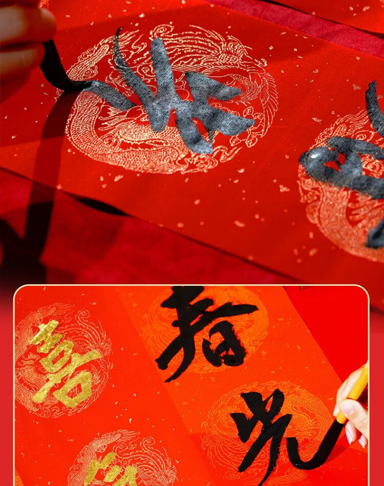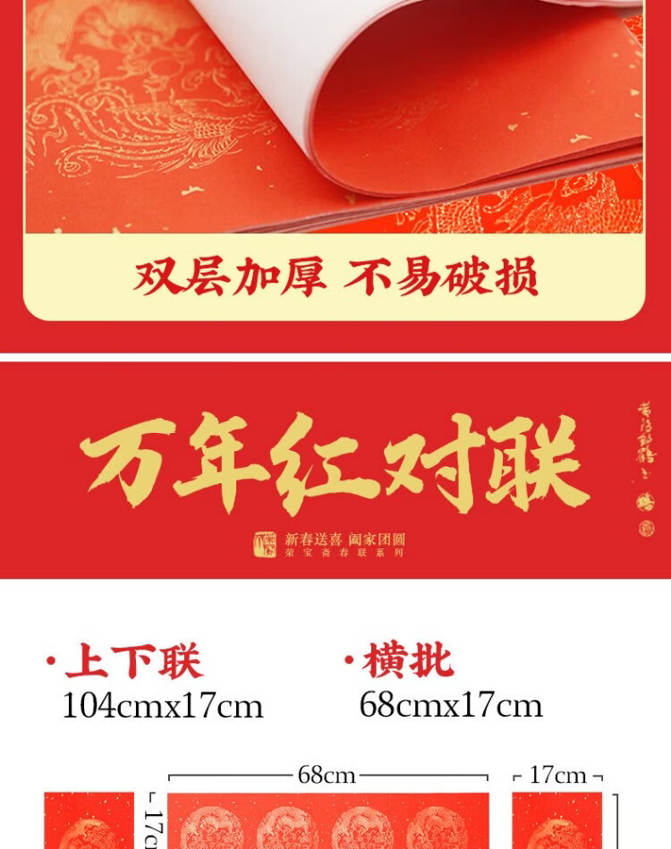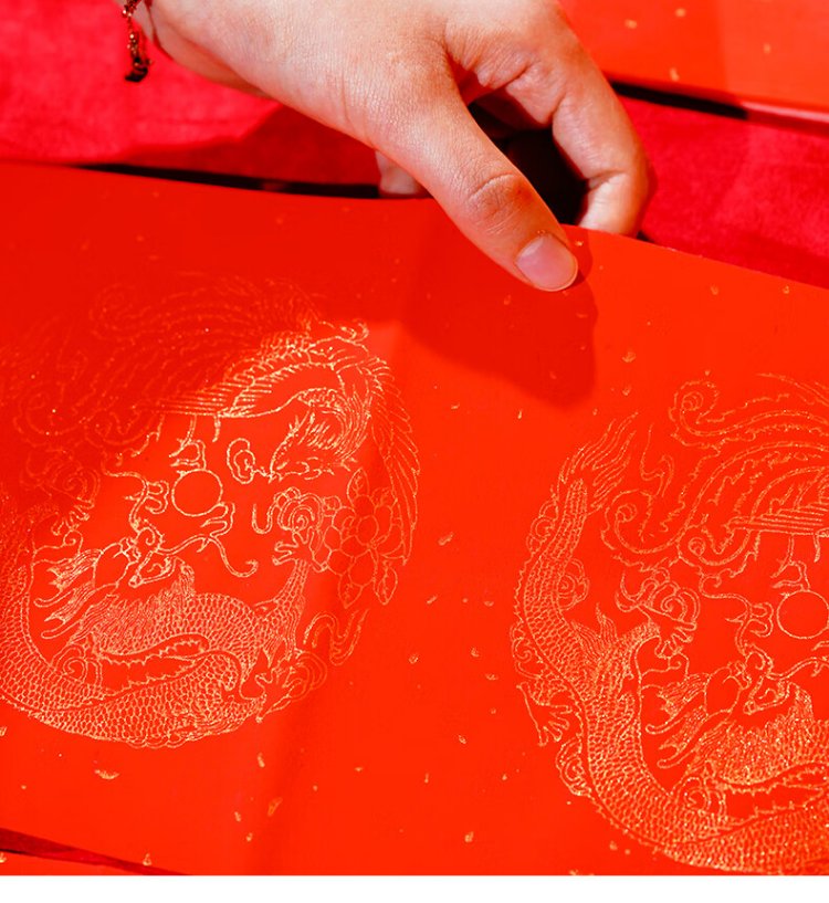 Rongbaozhai thickened 5 pairs of special paper for Spring Festival couplets in ten thousand years of red couplets, gold handwritten blank seven words, 2026 Spring Festival New Year calligraphy and blessing characters, gilded red paper, dragon and phoenix show auspiciousness 138