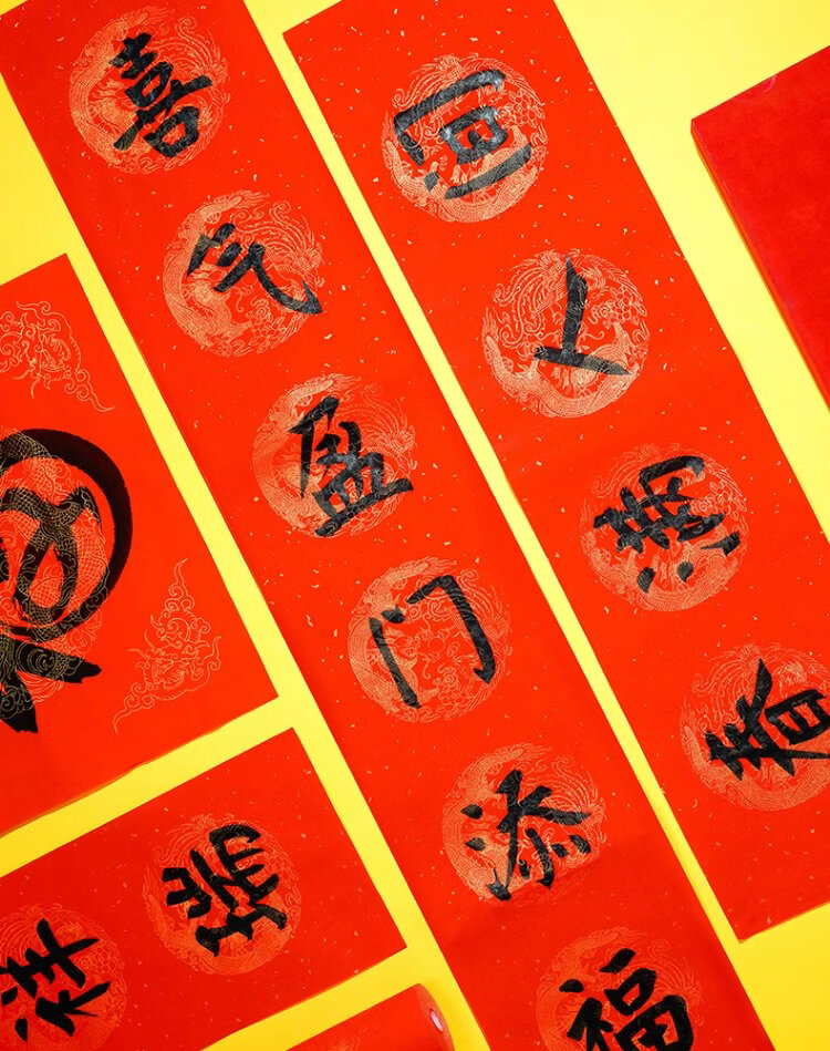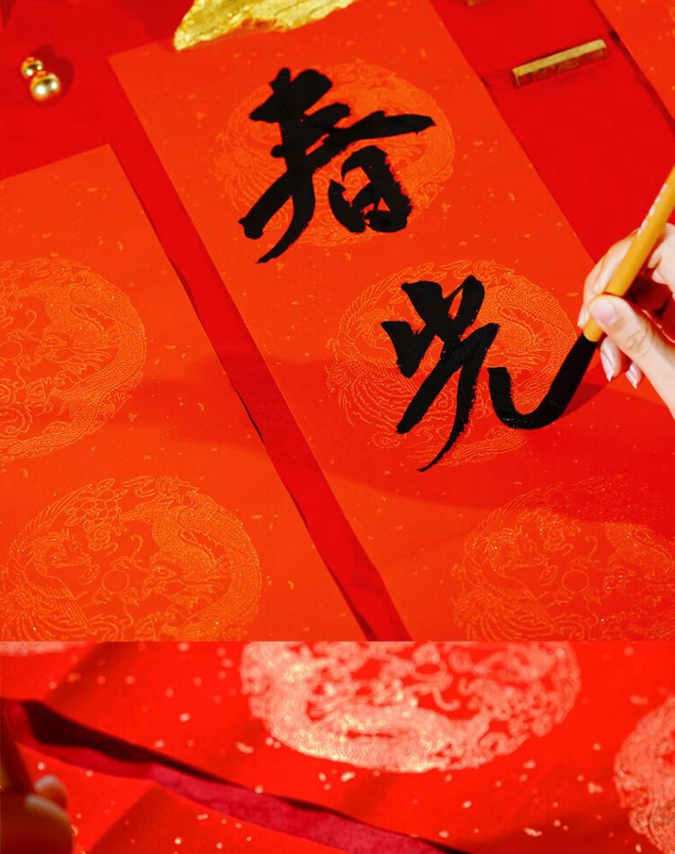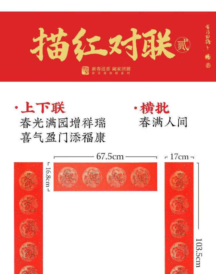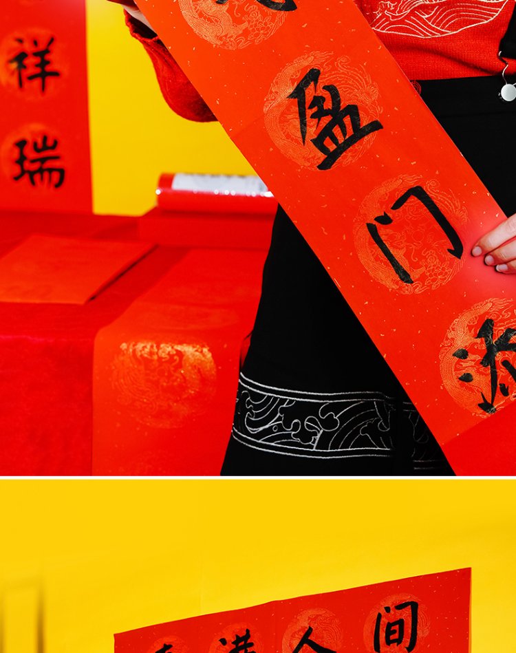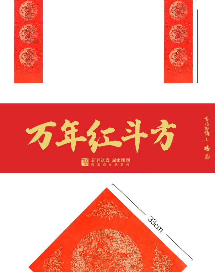 Rongbaozhai thickened 5 pairs of special paper for Spring Festival couplets in ten thousand years of red couplets, gold handwritten blank seven words, 2026 Spring Festival New Year calligraphy and blessing characters, gilded red paper, dragon and phoenix show auspiciousness 138