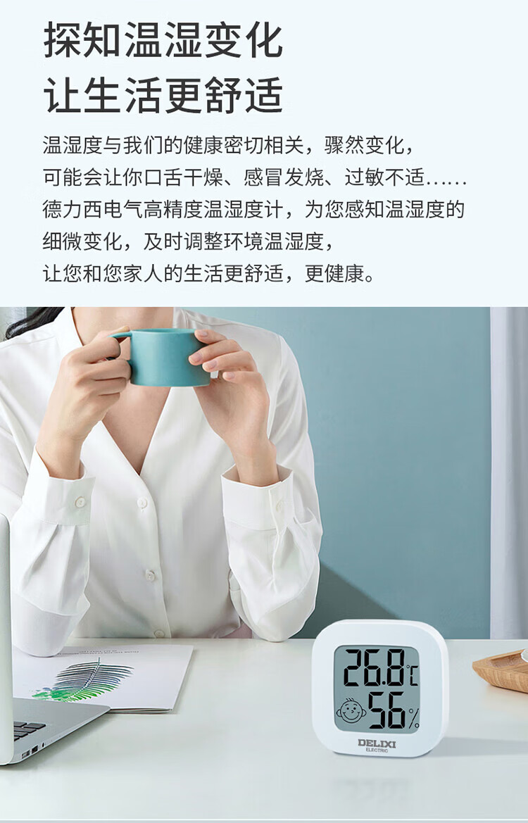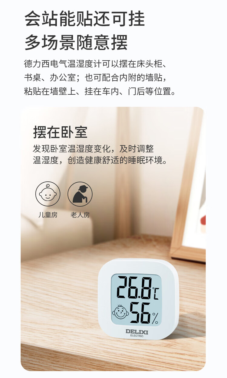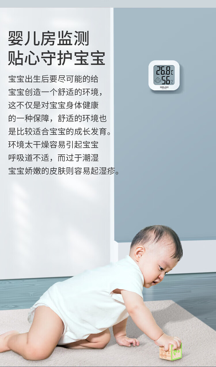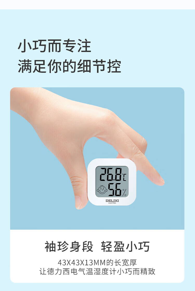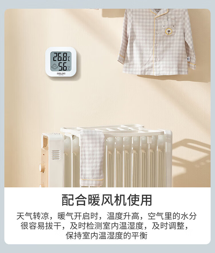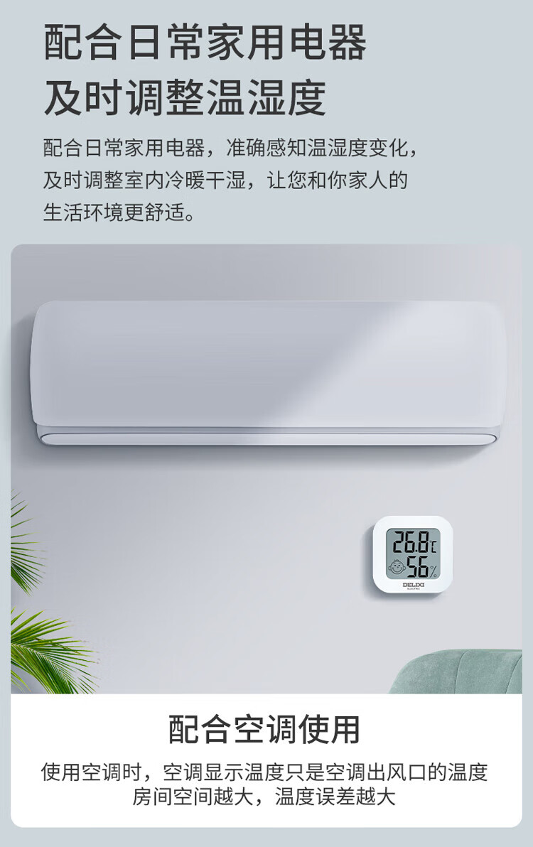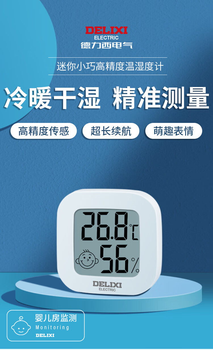 DELIXI ELECTRIC electronic thermometer indoor car office home bathroom baby room digital display high-precision wall-mounted temperature and humidity meter