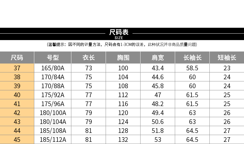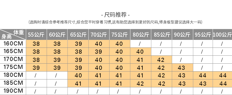China (cm) 160-165/84-86 165-170 / 88-90 167-172 / 92-96 168-173 / 98-102 170-176 / 106-110