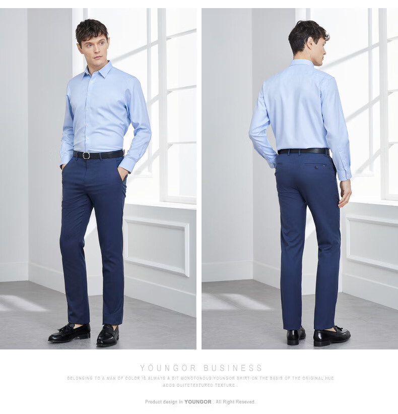 YOUNGOR 25 new solid color DP no-iron shirt cotton anti-wrinkle easy care long-sleeved shirt for men white 41