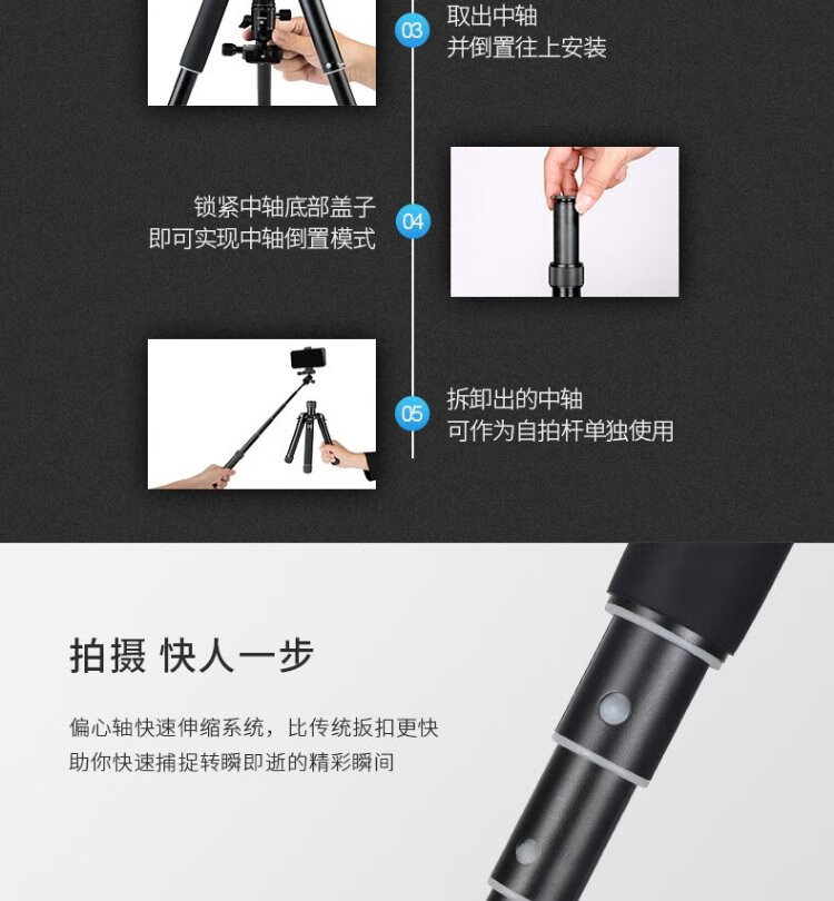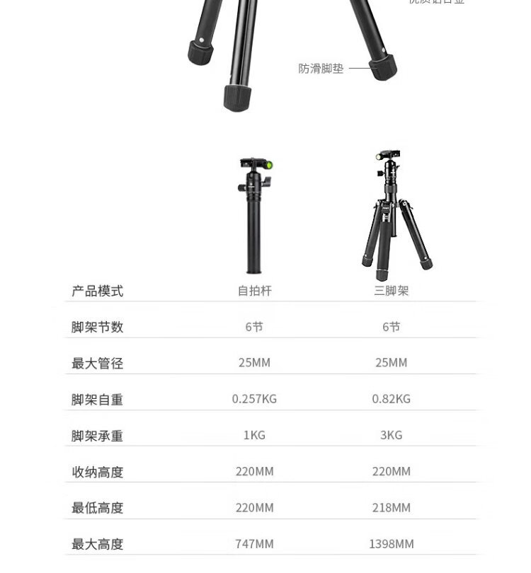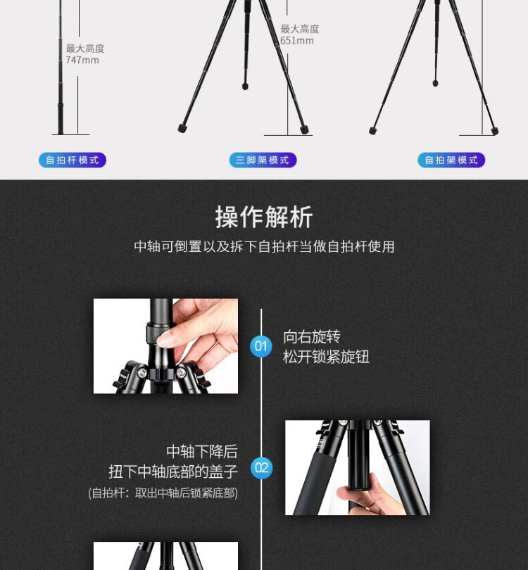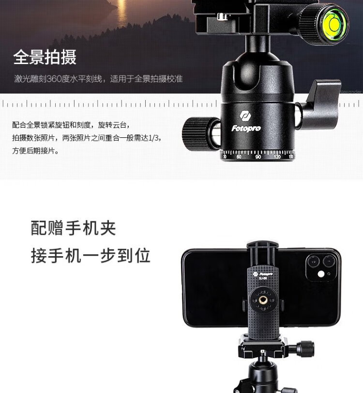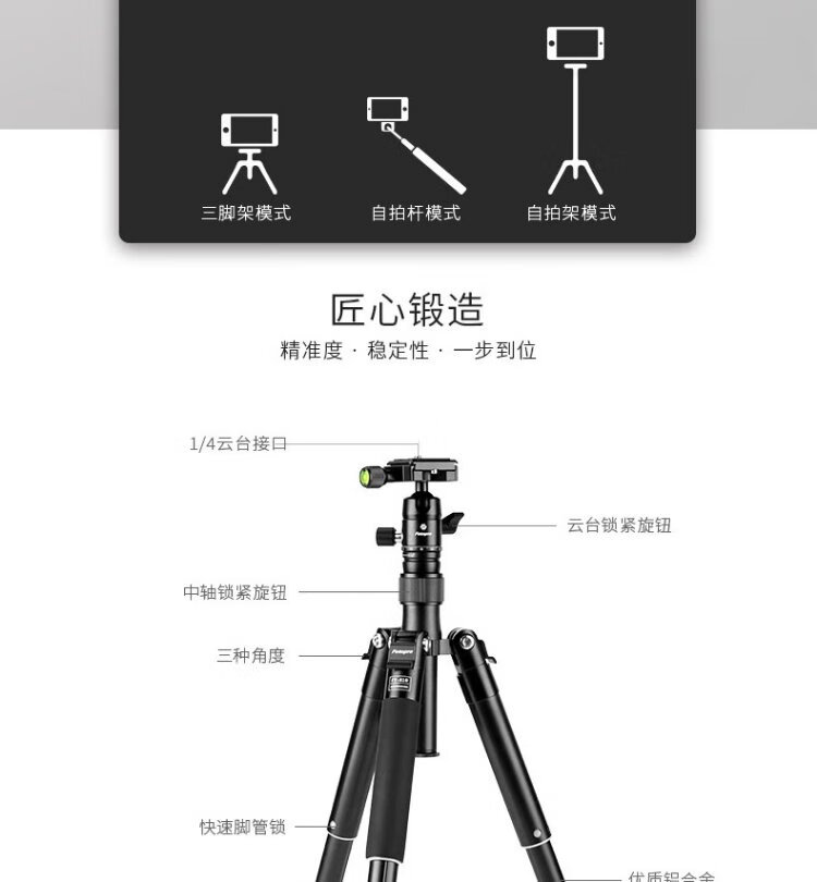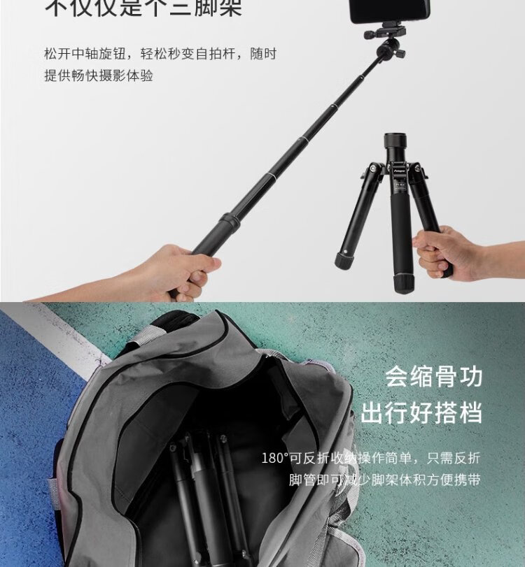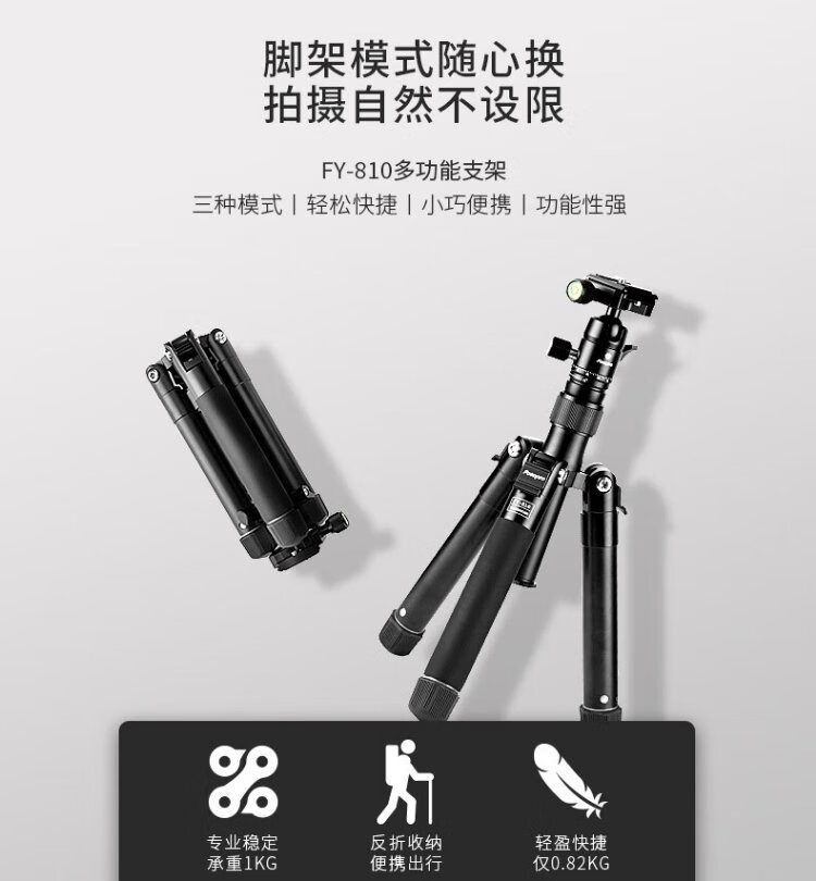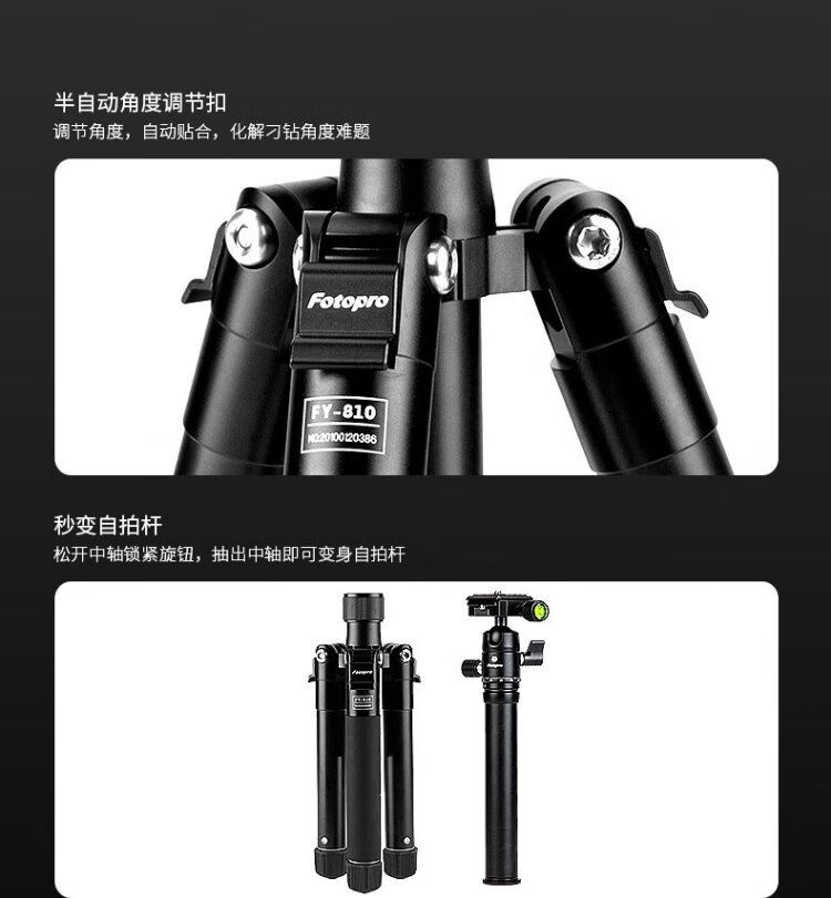 Fotopro FY810 digital panoramic pan/tilt selfie stick desktop tripod digital camera tripod three modes multifunctional portable tripod