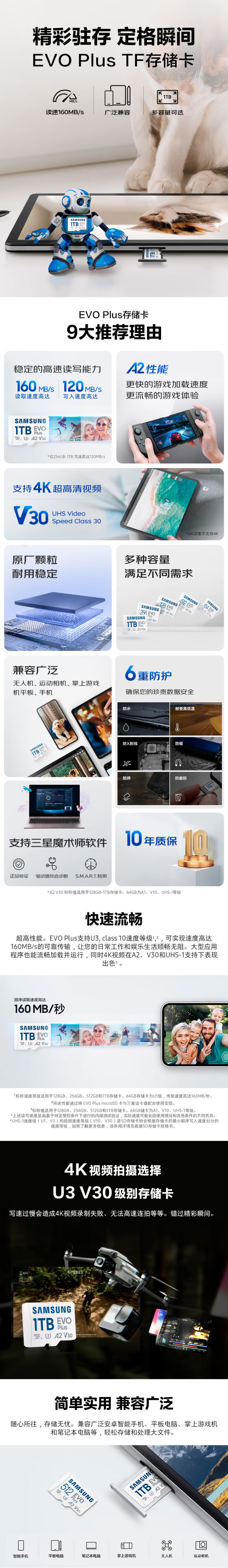 三星(SAMSUNG)128GB TF(MicroSD)存储卡 EVO白卡 U3A2V30 手机平板switch游戏机内存卡 支持4K视频 读160MB/s
