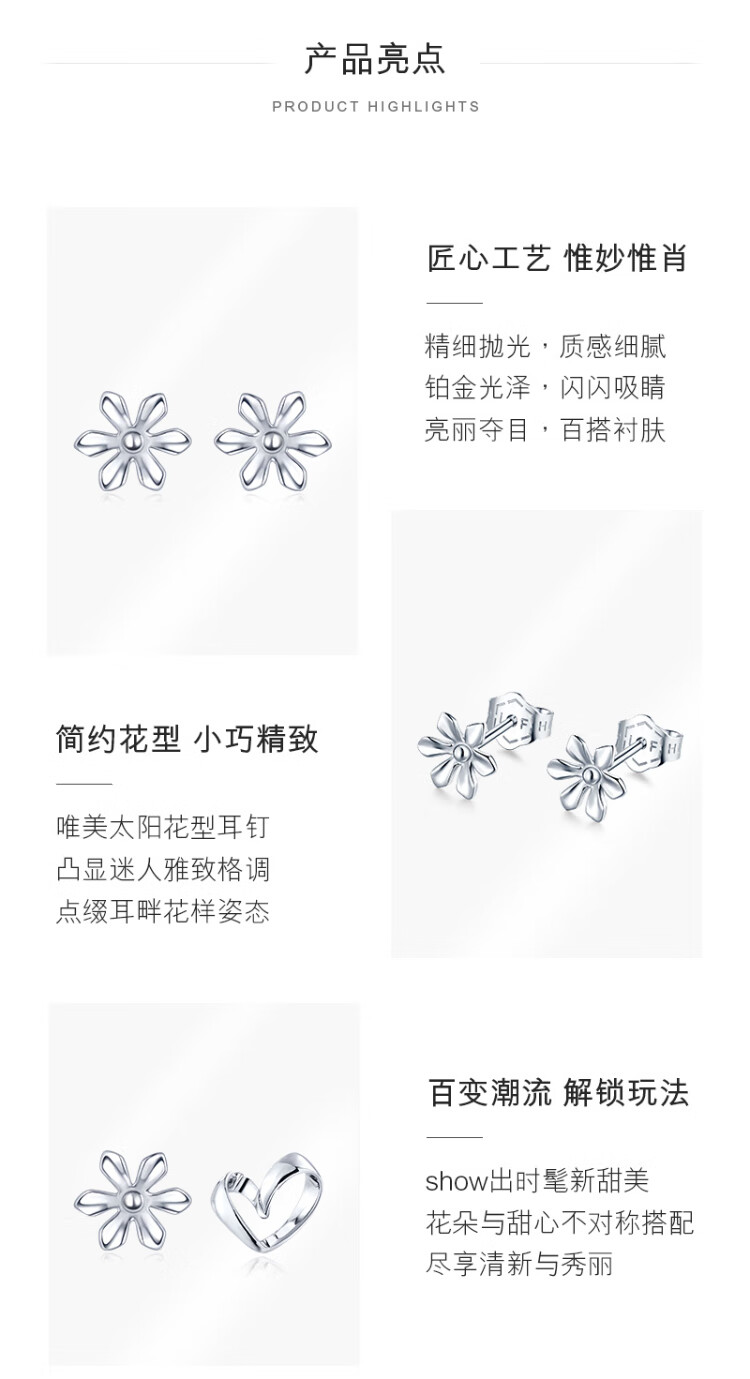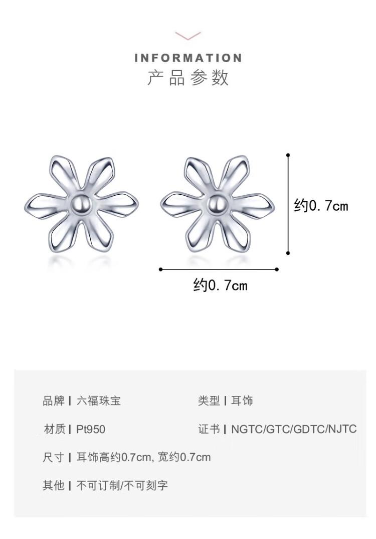 Lukfook Jewelry Platinum 950 Sunflower Platinum Stud Earrings Price HIPTBE0002 Approximately 1.42 grams