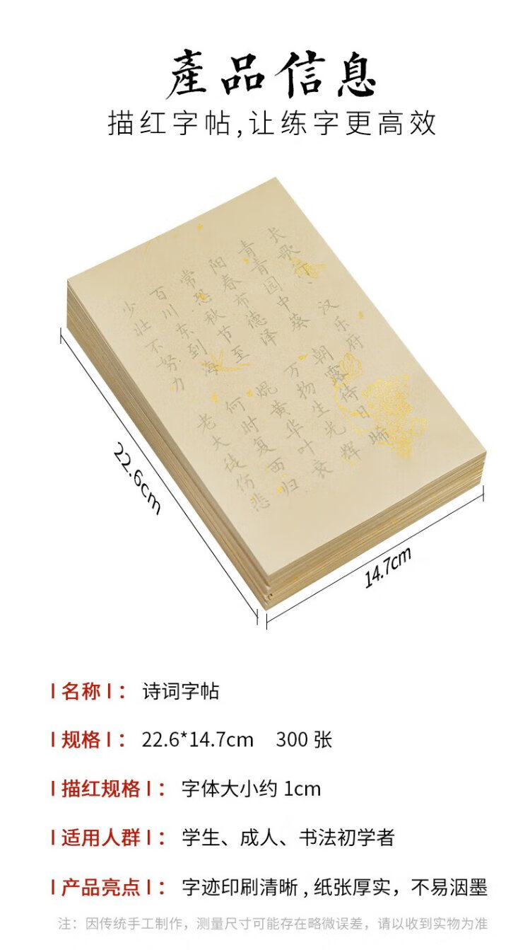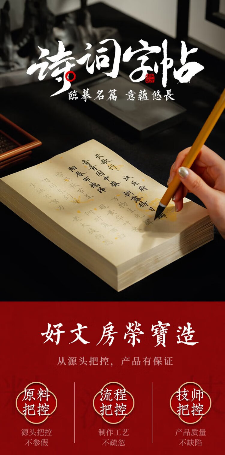 Rongbaozhai 300 calligraphy brush copybooks, introductory practice of copying and red calligraphy, special half-cooked rice paper for manuscripts with soft pen and small regular script, Tang poetry and Song lyrics - popular products recommended by famous teachers