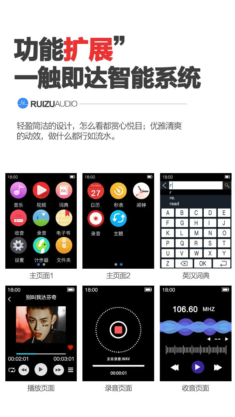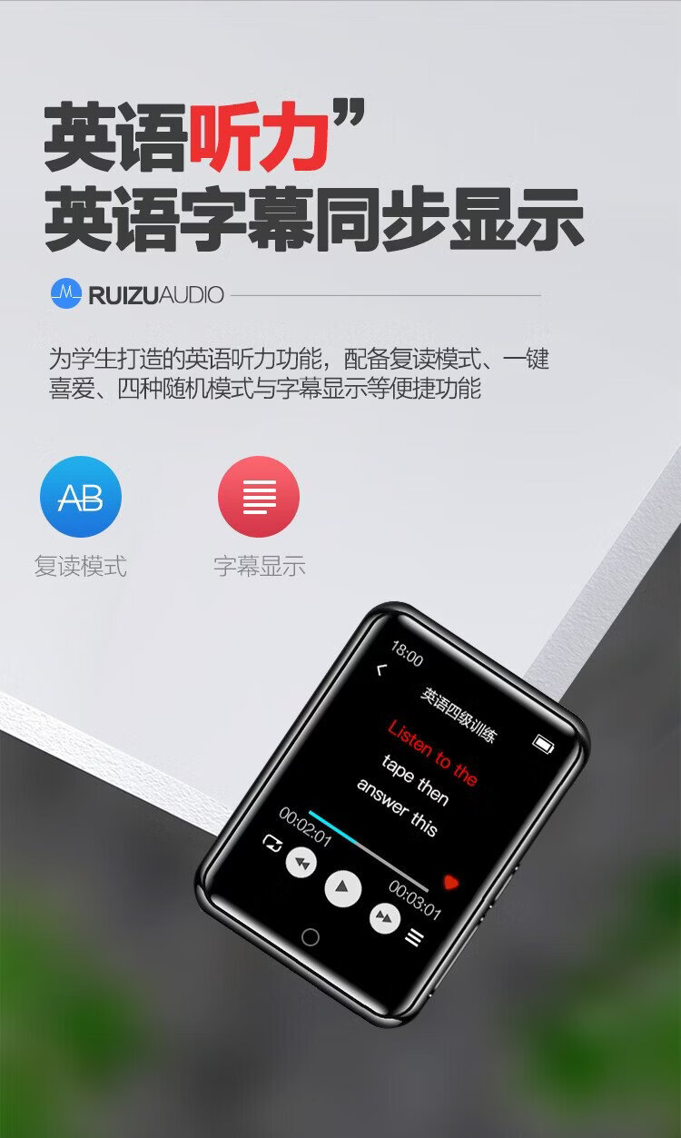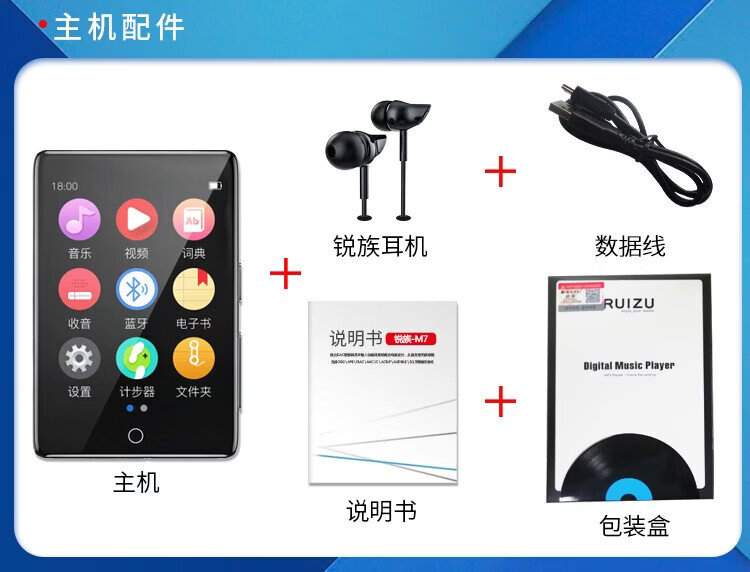 Ruizu M7 16G mp3/mp4 player, national supplement, lossless music player, 2.8-inch Bluetooth English dictionary, student listening mp5 recording, novel e-book reader