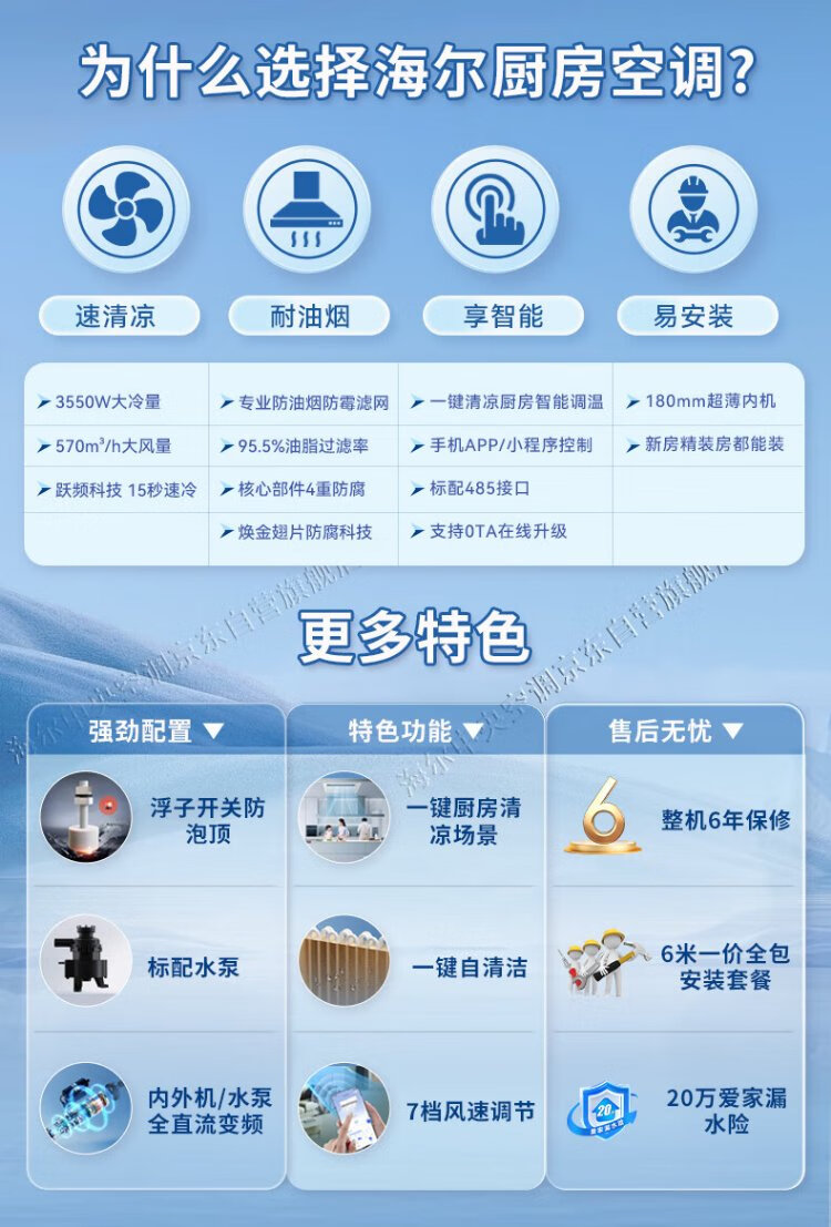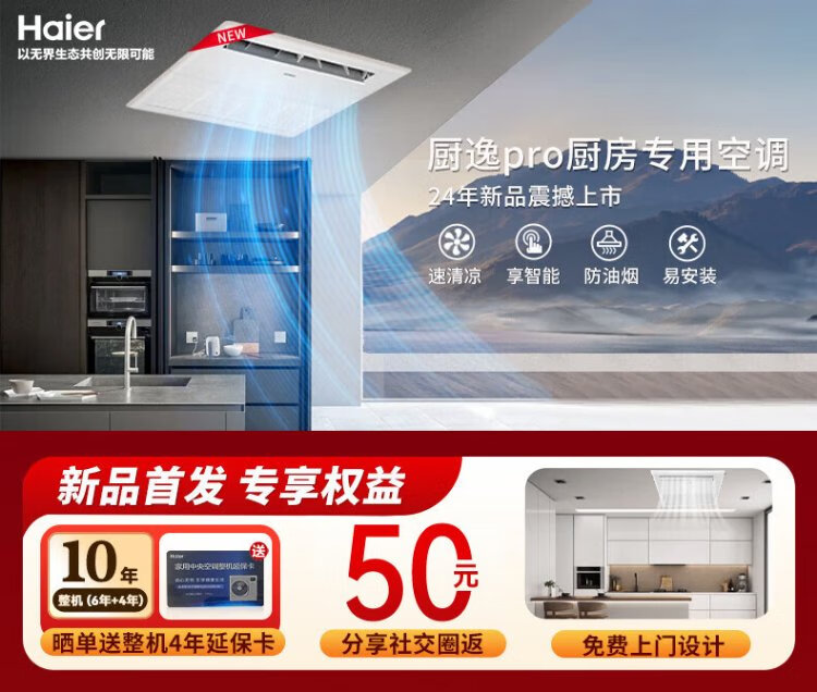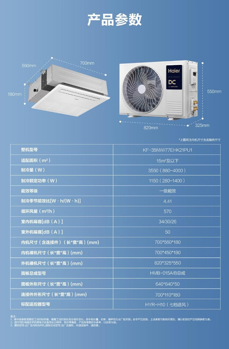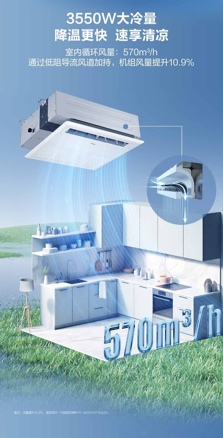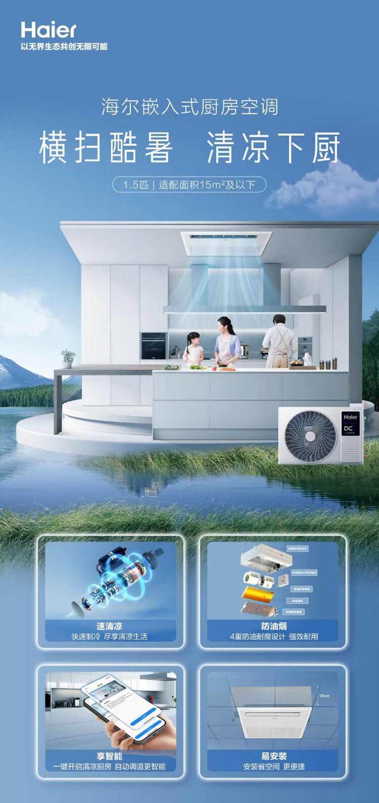 Haier 1.5 HP kitchen air conditioner embedded single cooling ceiling type 1.5P first class energy efficiency oil fume resistant KF-35NW/77EHK21PU1 6 meters installation included National subsidy