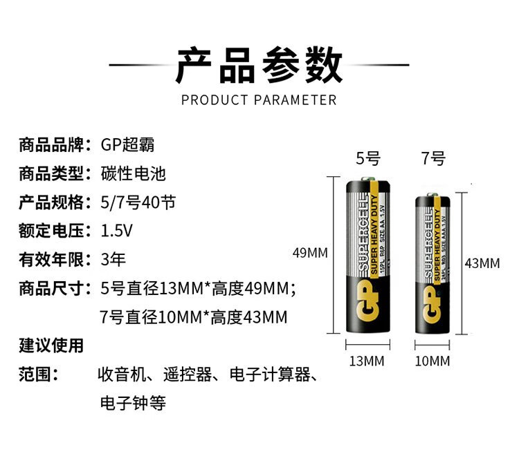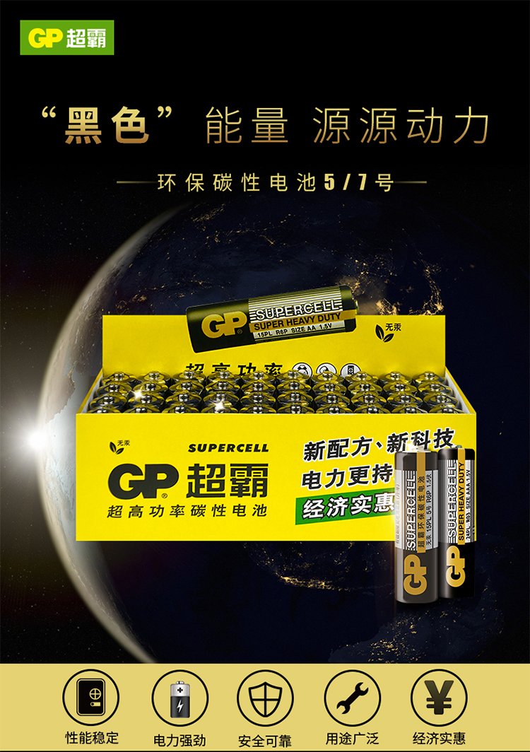 Speedmaster (GP) No. 7 battery 40 capsules No. 7 carbon dry battery black super suitable for ear thermometer / oximeter / blood pressure monitor / blood glucose meter / mouse, etc. No. 7 / AAA / R03 same model in supermarkets