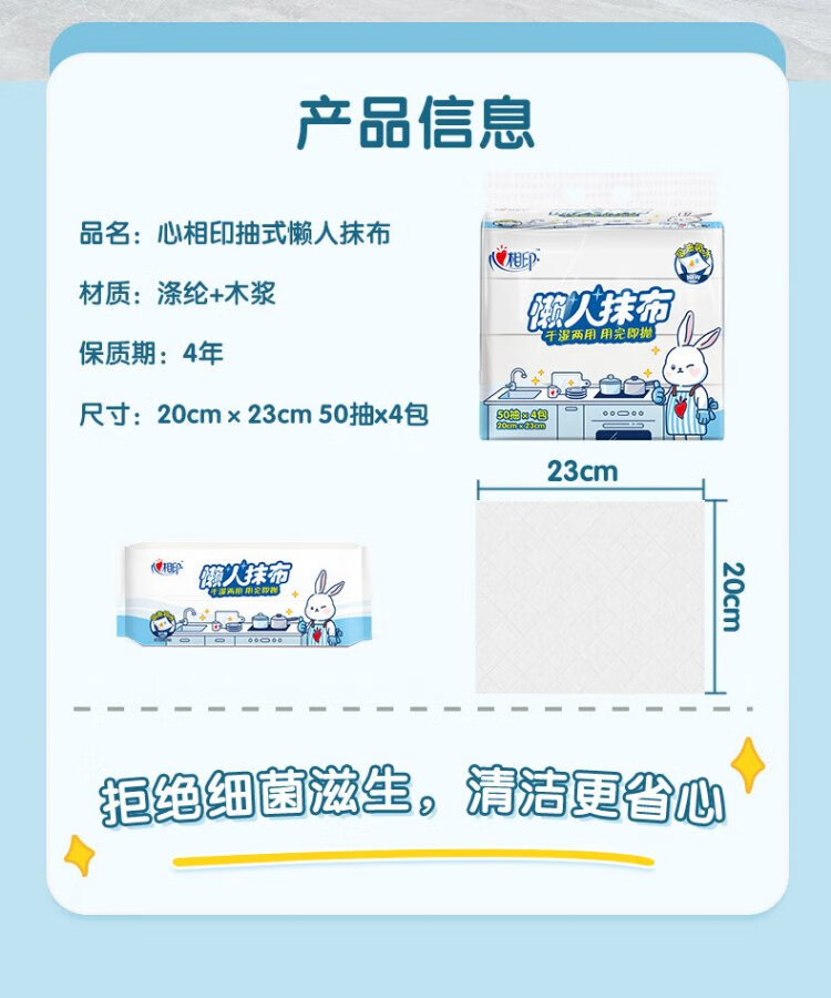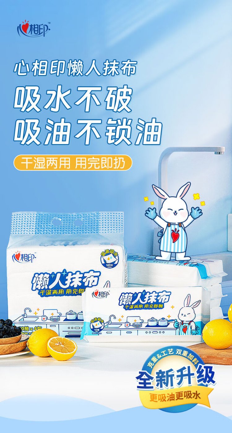 Xinxiangyin lazy rag removable 50-pack * 4 pack thickened disposable rag oil-absorbing and water-locking kitchen paper non-woven fabric