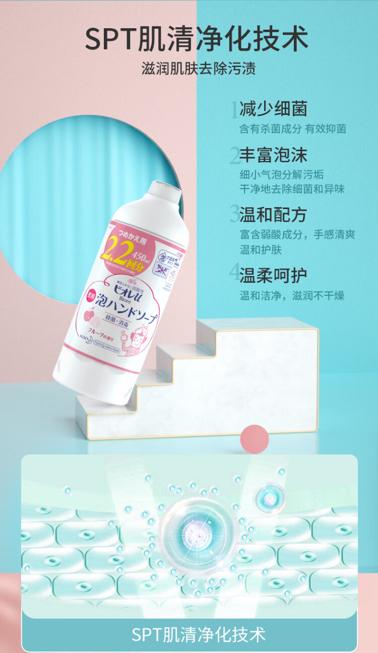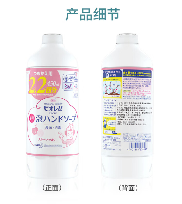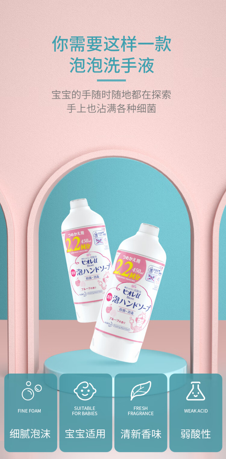 Kao (KAO) hand sanitizer refill 430ml foam type infant and children hand sanitizer baby bubble antibacterial hand sanitizer fruity fragrance